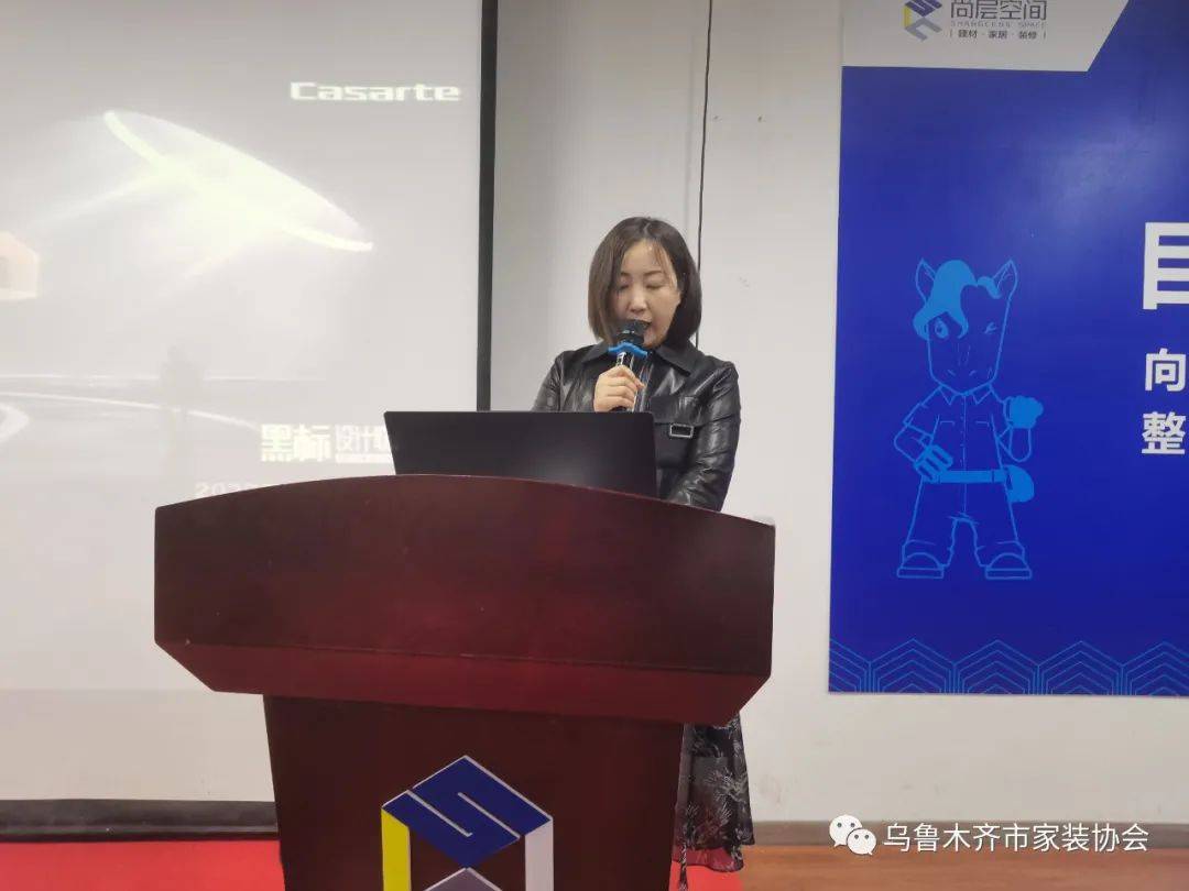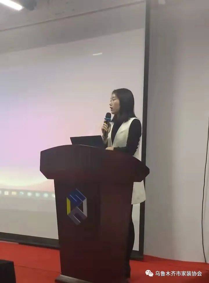 (乌鲁木齐市家庭装饰装修协会副会长、新疆尚层本色装饰工程有限公司执行总经理孙高峰) 海尔智家新疆分公司三翼鸟品牌总监殷灵芝介绍了海尔智能家居、三翼鸟高端家电品牌,她表示,本次设计大赛,海尔智家新疆分公司非常重视,也愿意和乌市家装协会共同举办一届高质量的设计大赛。