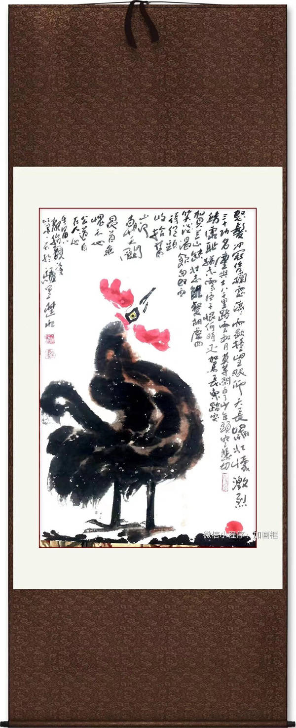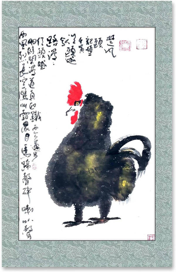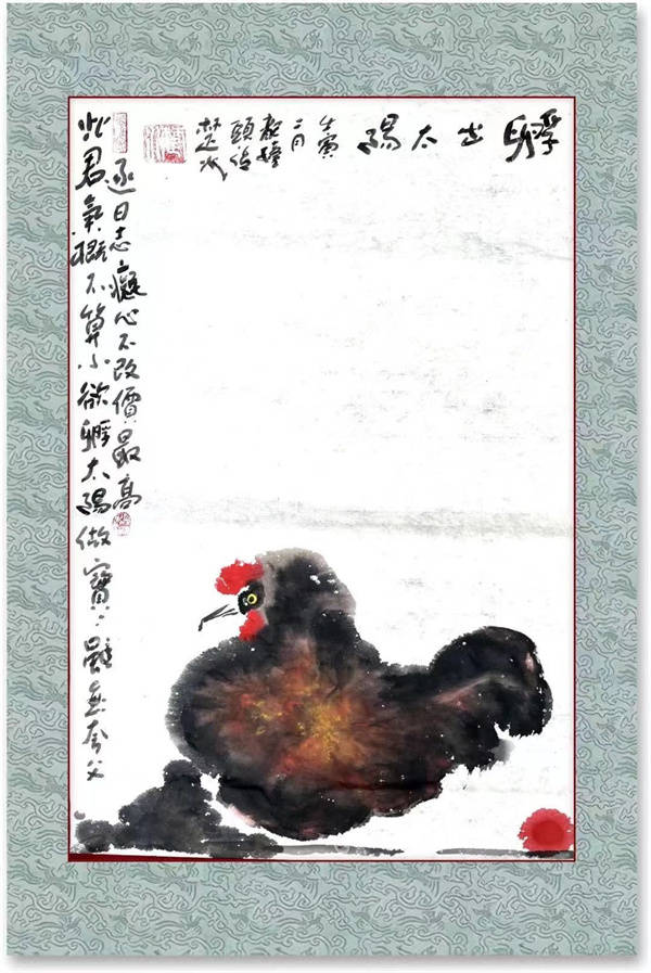 早上画了两幅画,都是爬在地上的母鸡,并没有什么特别之处。 老楚同志是一个充满希望的人,如同鲁迅先生《药》结尾处,一定要在夏瑜的坟头加上一束花环一样,总喜欢在画面上加一轮太阳,而且是旭日东升的太阳。 这两只母鸡也是这样,加太阳时,一不小心,加到了母鸡的肚子下面了,就像母鸡孵小鸡那样孵化太阳,于是乎,第一幅题款: 此君气概不算小 欲孵太阳当宝宝 虽无夸父逐日志 痴心不改价最高