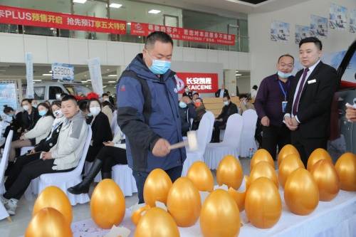 长安星卡PLUS(参数|图片)亮相于众,宣告着长安凯程星卡PLUS新车上市,业务发展版图再进一步。随后,来到了喜庆的提车客户上台砸取金蛋环节,客户获奖上台领奖,全场气氛热烈,潜在客户连连增涨,业绩颇丰。