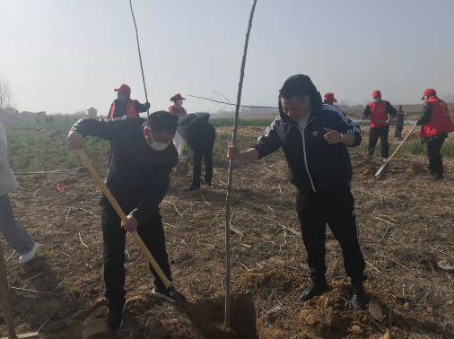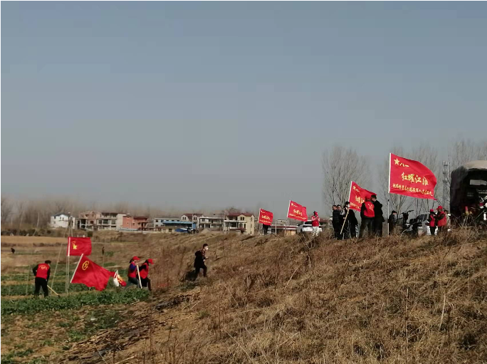3月8日,虽然是“女神节”,巾帼同胞们本应享受节日喜庆欢快的节日,但她们真乃飒爽英姿五尺枪,个个都身着红色的志愿者服装,和男同胞们一样,雄赳赳、气昂昂地,都参与了由安徽太和县阮桥镇党委书记李志、镇长李新建组织带动的学雷锋志愿者服务队中去,连同其他群团组织,一行上百人,来到黑茨河滩,各自拿起水桶、铁锹,投入到极为红火的春季义务植植树当中。