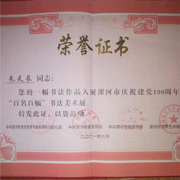 朱天长,男,字长乐,1965年7月出生,河南漯河市.号墨者学士.中国著名的书法家.上诲中华书法协会会员.河南省书法创作基地理事.字圣书画院理事.世界文化研究中心非物质文化遗产保护专业委员会会员,自幼喜爱书法.博采众长.对古人书法艺术认真学习.作品曾多次在全国获奖.作品远销新加坡等地.中国诗书出版社授予一代宗师荣誉称号.在这新时代.新征程中.我们共同学习.互相交流.互相尊敬.互相分享.以实现我们的梦想而奋斗。