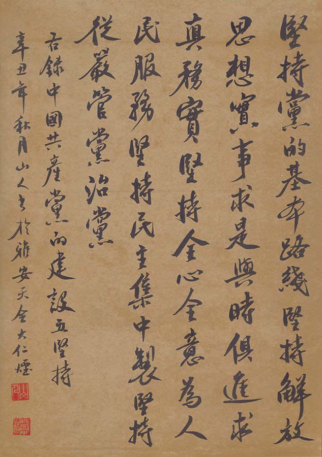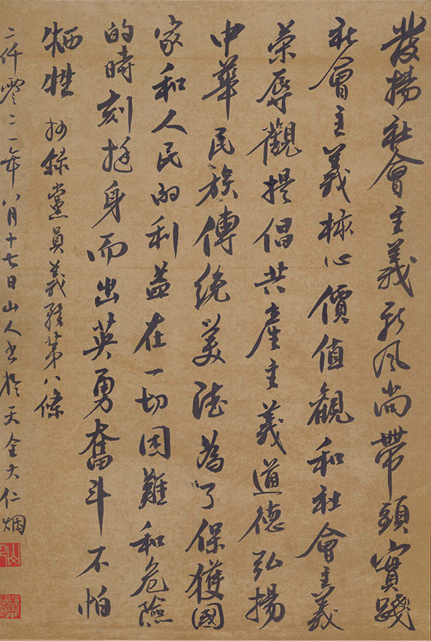 郑忠华作品 书法艺术不仅仅有点画美、结构美和章法美,还能够表现创作者的审美理想和文化内涵,同时也能够通过书法语言来抒发情感精神。在书法创作中,根植传统是古今任何一个书法家必须要具备的功力。郑忠华先生的书法将深厚的文化涵养融入传统笔墨语言当中,利用线条与墨的结合,充分显示出用笔的灵活性;给人一种厚重、浓郁,但笔意恬静,透着一种单纯而高贵的气象;创造了一种属于他自己情感化的笔墨构成方式。郑忠华先生的创作理念强调诗、书、文三者之间的关系,互为依靠,相得益彰!他的书法既继承了传统诗词的形式美,其表现出中华传统文化所倡导的'天人合一'的思想, 散发出浓厚的文人灵气。在他笔下的书法纵情挥洒,极力表达情感与情趣的相依相容,厚重与凝重的相得益彰,古典与现代的相映成趣,从而使书法作品具有诗意美、韵律美、自然美。可以看出,郑忠华先生的书风很正、很大气,纯正的气息中透露着典雅俊逸的魏晋风韵,渗透着一股端庄之美和荡气回肠之意。正是这种特有的抒情格调,显示了他书法中的正大气象。