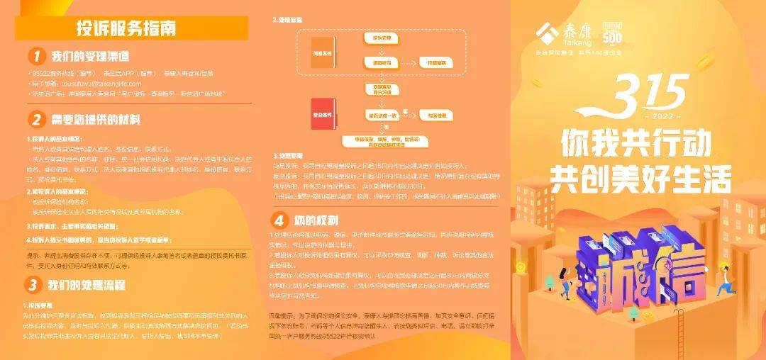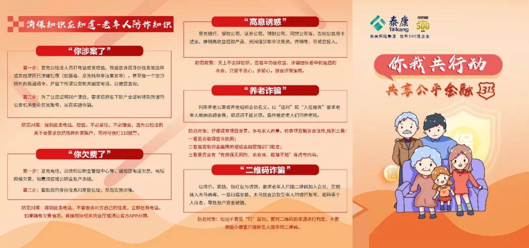 2022年,泰康人寿坚持围绕保护客户权益,响应监管要求,以“共促消费公平·共享数字金融”为核心主题,开展了2022年“3.15”消费者权益保护教育宣传周系列活动。 消保普及更入心 据了解,泰康人寿在线上打造了消保宣教“四部曲”,一是与受众广泛的新浪联手,开展“315消保大课堂”,邀请金融保险行业专家学者讲解消保知识;二是通过“以案说险”、风险提示、消保知识解答等活动形象清晰地宣教相关知识,与客户和广大消费者实现良性互动;三是运用短视频平台、互联网媒体、电视、报纸等多媒体渠道开展全方位的消费者权益保护知识宣传,实时活动进展全方位及时推广发布;四是以线上答题、创意海报、动画视频等方式解读金融消费者基本权益、互动加深理解,通过立体化金融宣教供金融保险消费者深入理解数字金融时代“消保”内涵。 在线下,泰康人寿也开展了贴近群众、贴近消费者的消保宣教“三活动”:一是金融宣教进老年社区、进校园、进革命老区、边远地区及脱贫地区,重点关注“一老一少”消费者权益的保护;二是开展“总经理接待日”活动,以客户为中心,零距离倾听客户的“消保心声”;三是联合监管、行业协会、其他保险机构等单位开展公益性金融宣教,壮大宣教队伍,扩大宣教活动的影响力。 跨越“鸿沟”更暖心 泰康人寿推进金融服务数字化转型的教育宣传,强化特殊群体金融权益保护,积极助力消除“数字鸿沟”。据悉,泰康人寿各分支机构纷纷聚焦老年人差异化服务,在营业网点门口及人流量较大的地区举办线下户外“3.15”宣教活动,通过发放宣传资料、咨询解答的方式,向现场群众普及金融知识,进行风险提示,引导消费者增强风险防范意识;对于到公司柜面办理业务的老年客户,工作人员指导客户下载“泰生活”APP,手把手教长辈们如何绑定、查询及操作,通过介绍“泰生活”APP的各项功能,从而增强该群体对智能技术的了解及信任,促进老年人融入智能时代;开展“金融知识进社区”活动,组织公司员工深入社区,为老年人发放反洗钱、防范非法集资等宣传折页,讲解如何防范金融风险,帮助群众尤其是老年朋友提升防范非法集资和金融诈骗的能力;此外,加强资管新规教育宣传,尤其注重引导老年消费者“不乱投”,提醒理性消费、谨防金融诈骗,科普金融知识,进一步提高老年人维权、防骗意识和自我保护的能力。