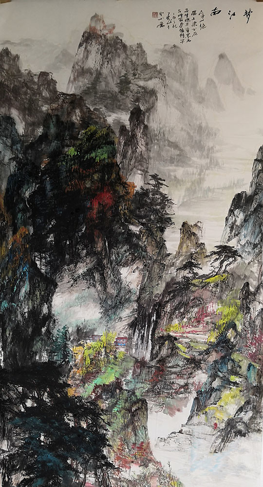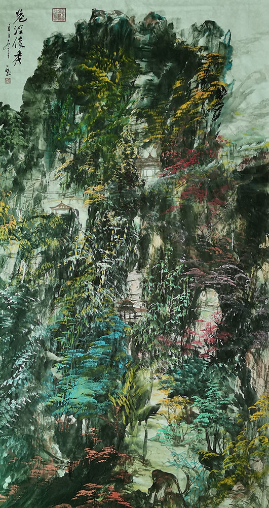 杜一恕作品 杜一恕先生的内心画境里,形与神,势与气,风和骨,笔和墨都融为一体,尽显诗情画意。他的作品既有法度,又博采众长、不泥古法。作品多以描绘大自然的景色,秀丽风光,常运用色彩渲染,画面绚丽而又不张扬,描绘山川自然间清新、唯美的山水景色,将山水景色跃然于方寸之间,让人感受山川自然的美妙绝伦。杜一恕先生把自己内心积蓄的情感通过画面表达出来、达到与心灵的交流,表现出自我心境,于随意之中显示其精妙与豁达,呈现出潇洒隽逸的笔墨情趣,体现了“形神兼备”的创作观念,构出意境而表达作品的诗性。那高大威武雄壮的青山配以云中信步的树木丛林,既具气势又不失灵秀;一种高雅舒爽之气扑面而来。杜一恕先生用笔墨的语言体现个人情感精神,从画面中可以看出他所追求的意出天然,笔动生趣的意蕴;强化了作品的空间感及光影色彩的运用,增强了作品的艺术感染力,以率真的情感营造天然的情景,让欣赏者从一个个侧面领略到大自然所具有的独特魅力。所以,杜一恕先生积极探索中国书画传统艺术的特点;用自己擅长的抒情方式,呈现出自然山水的意境、格调、气韵和色调,散发出自然诗意与和当代审美的气韵,极富艺术感染力。