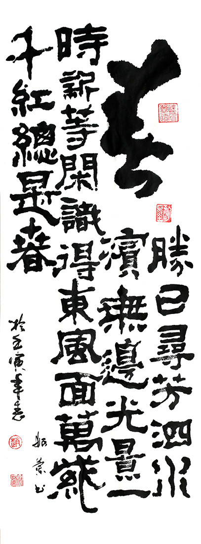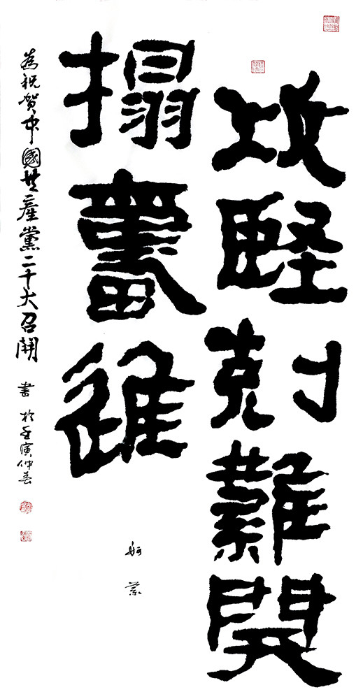 赵珂作品 赵珂女士是学者型书画家,注重传统,融古汇今,始终秉承传统文化和大自然的灵秀之气,把自己的修养、学识、志趣、理想融入创作中。凭借坚实的创作功底与立意深刻的创作思维,融情感于笔端,倾情于笔墨色彩,立意深远、独具一格。在书法创作中,赵珂女士植根传统,既重视文化、尊重传统、又努力追求现代审美意趣;渗透其文字性、内容性、文意性等方面,着重于书法中的空灵、内涵和哲理,追求感情的奔放和线条的抒情洒脱,通过情感共鸣催人深思。赵珂女士在创作中抒发生活所感,让文字表现得真挚、浓郁、隽永,把自己所要表达的思想感情在字里行间贴切的很自然的抒发出来,感情真挚,韵味十足。通过书法线条、章法布局、文字内容传达思想感悟、精神情感等,再加上品格的修养,以境入书,让书中的意蕴得以扩展,其化境尤具诗意,增强了书法之韵味。在书法形式上,可见赵珂女士的线条雄强沉稳,结体扎实且张合有度,法度严谨但节奏变化丰富。气势上,既“随势而度,依势而行”,又达到“精神气度,气势所趋”。赵珂女士是把自我精神生动地跃然纸上而感染他人,以其灵动多变的线条抒发着他的心绪情感,展示着审美趣味,传递着现代社会的精神气象;这是作为艺术家最为难得的天赋秉性。观其书法所具有的一股难以遏止的气势和力量,其中不仅有力度,而且有情韵、有节奏,气势雄放,境界壮阔;从而使作品具有诗意美、韵律美、自然美,最终达成意蕴与哲学的完美展现。这不仅让人感受到对传统的理解和诠释,而且对文化的时代性、民族性的深切感悟。