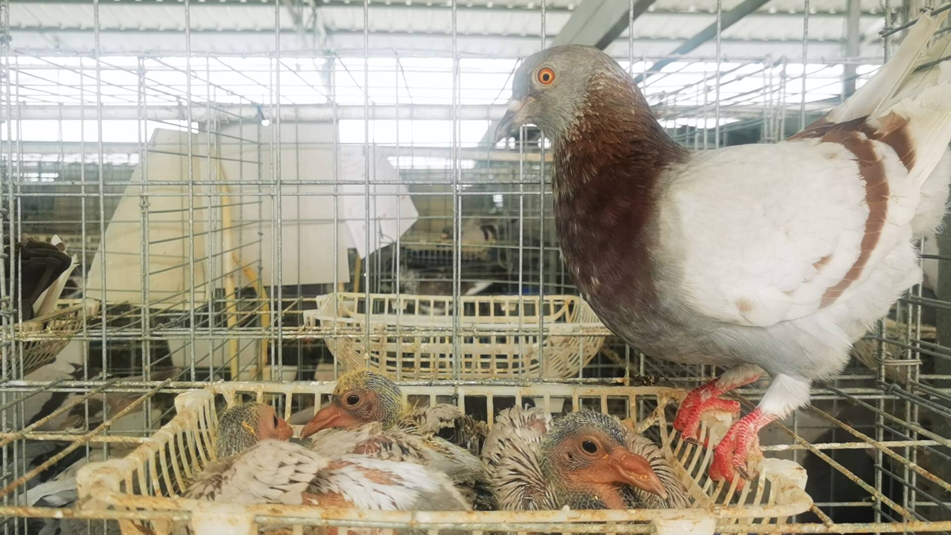 作为南宁市西乡塘和鑫鸽家庭农场有限公司的领头人,张凤芹自信满满的说:“小鸽子可以做成大产业。但是必须要走从养殖到一条龙深加工的鸽子产业化道路,只有产业化才能让鸽子养殖事业发展得更好更远。” 传统的养殖模式鸽子一个月只下两枚蛋,孵出的小鸽子也不像鸡、鸭那样,一出壳就会自己叨食,而是靠大鸽子嘴对嘴用嗉囊分泌的乳汁喂养,一般一对种鸽一次只喂养两只幼鸽,繁育速度较慢。为了提高产量和质量,张凤芹大胆地从万里之遥的呼伦贝尔、内蒙古和西伯利亚引进优良品种与本地鸽子进行杂交改良,经过几年的刻苦学习和落地实践,逐渐掌握了饲料配比、种鸽配对、产卵记录、幼鸽护理、疫病防治等专业技能,还创制出“一鸽带多仔”的特色养殖新技术,并成功注册了“八瑞鸽”商标,打造出属于自己的养殖品牌。张凤芹告诉记者,经过杂交改良后的呼伦贝尔、内蒙古以及西伯利亚新品种幼鸽,出生到速大仅需18天,再精心喂养16天总共34天就可以出栏。改良后的新品种比本地品种体型健壮,成活率高,成长期短,肉质鲜美。