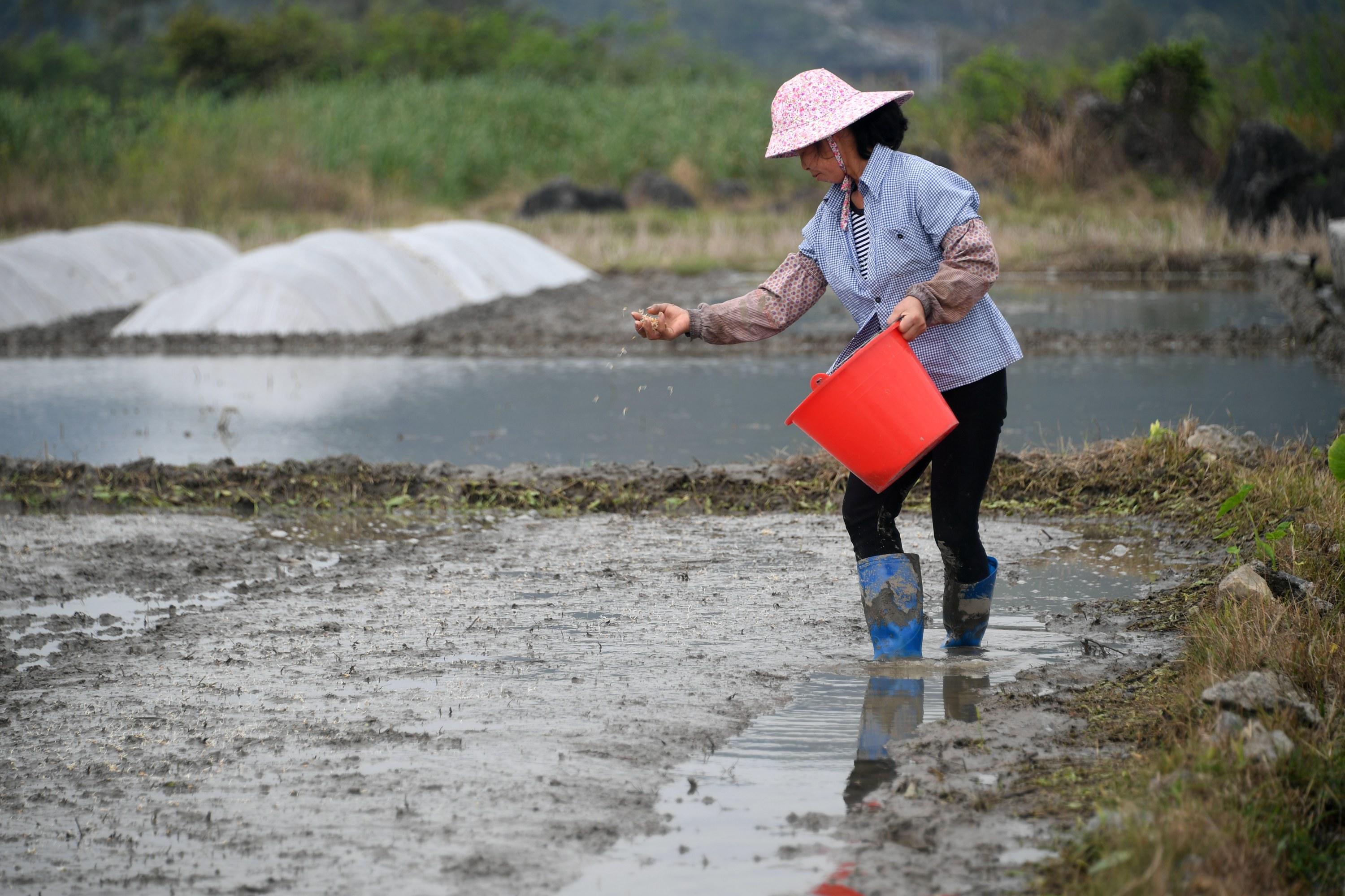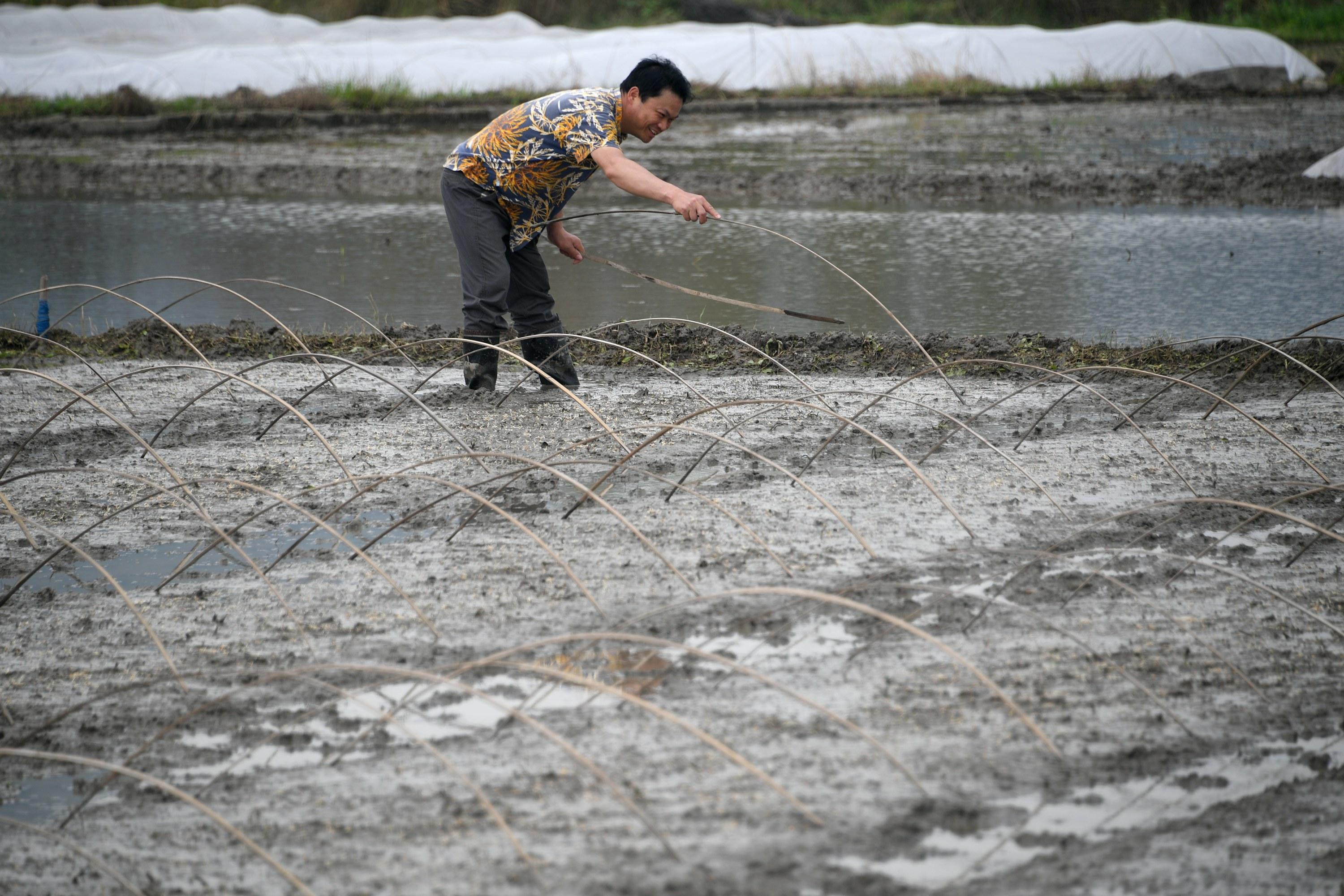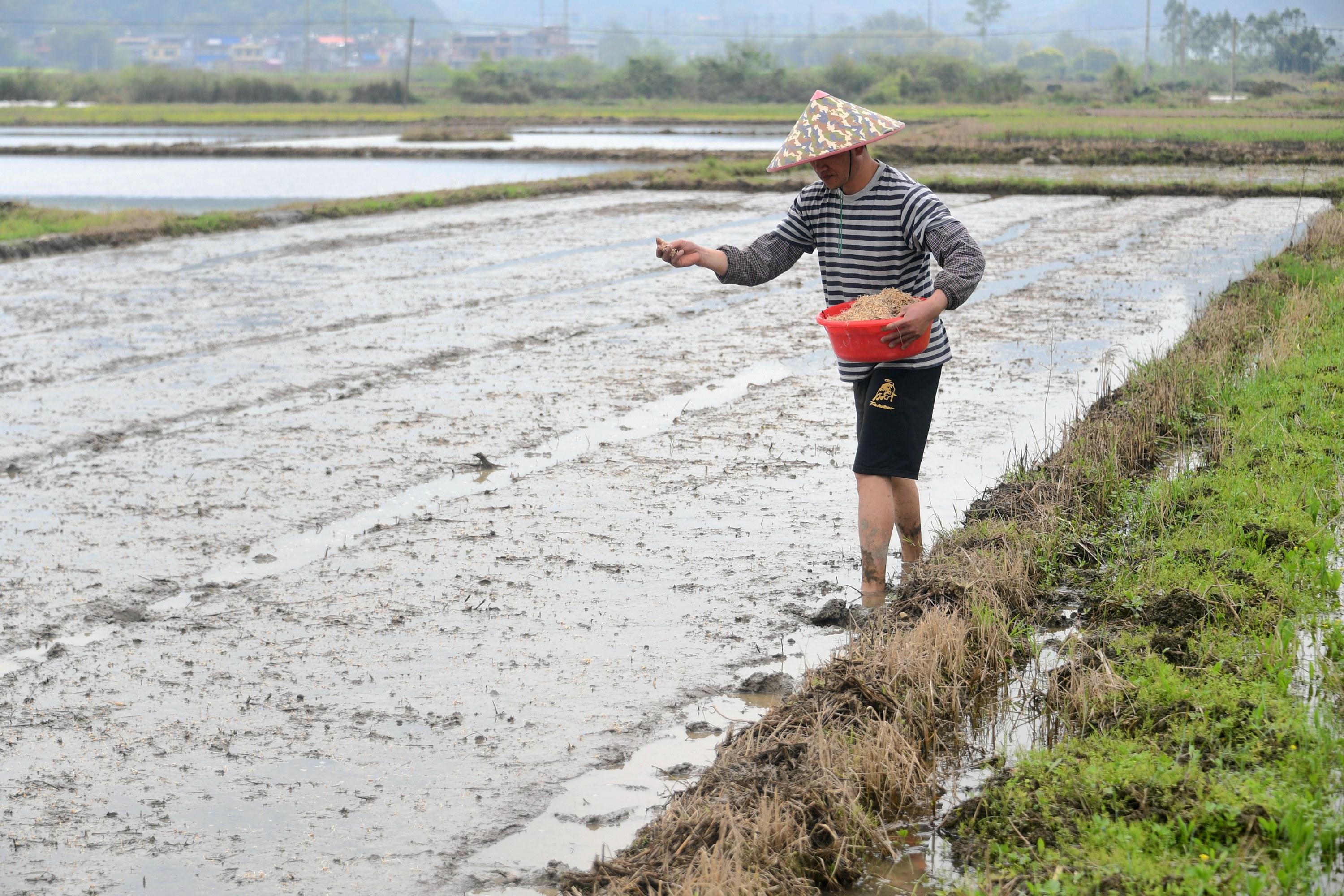2022年3月20日,广西河池市罗城仫佬族自治县东门镇桥头社区地久屯村民在整理早稻秧田、播育早稻种子。 当日是二十节气中的“春分”,正是南方早稻育秧时,广西河池市罗城仫佬族自治县各地群众抢抓农时,抓紧开展早稻播种育秧等农事生产活动,确保粮食稳定丰收,田野间处处繁忙劳作景象。 ![]()