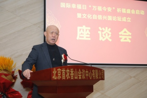 3月20日,在第十个国际幸福日来临之际,为表达对一线抗疫工作者的敬意和对伟大祖国风调雨顺、国泰民安的美好祝福,在著名书法家张世忠教授的倡导下,由“万福今安文化自信兴国论坛”和中华网“百年百寺频道”共同发起的“万福今安”祈福公益活动启动暨“万福今安文化自信兴国论坛”成立座谈会在北京香山会议中心召开。