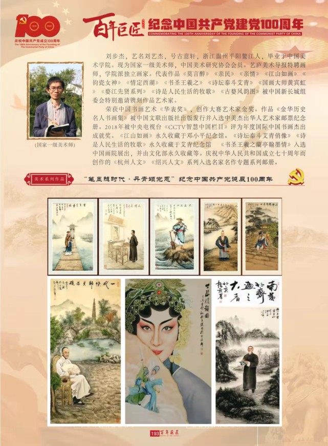 中国美术学院教授、博士生导师,中国美术家协会理事,浙江省美术家协会副主席吴山明老师题写:刘步杰书画集 ![]() 原名:刘步杰 艺名:刘艺杰 室名:古意轩 黄鹤艺苑,号:古艺风影。 刘步杰,浙江省温州市平阳鳌江人,毕业于中国美术学院,师从周滄米,朱颖人,吴山明和童老师等。现为国家一级美术师,艺庐美术导报特聘画师,文化部中国美术研究协会会员,学院派独立画家。 刘步杰的艺术思想: 绘画艺术是一门向人类传递美的艺术,不但要求主题清晰,立意高远视觉美感,而且力求让人在大自然美的意境中感受生活。 刘步杰的艺术风格: 既继承和追求宋元绘画艺术的传统技法,功底扎实,又有现代学院派师承风格,两者互为融通,形成了自己融古贯今的作品风格,画面清丽,布局空灵,意境高远。尤其擅长人物山水画,采用工写结合的人物山水、人物园林山水系列创作,使人有来由,景有历史。技法传承有序,颇具功力。 观者如同身临其境,彷佛置身于溪水潺潺,松风阵阵的湖光山色。人物若出其中,真实自然,生动传神。画作人文底蕴深厚,空灵境界任行。