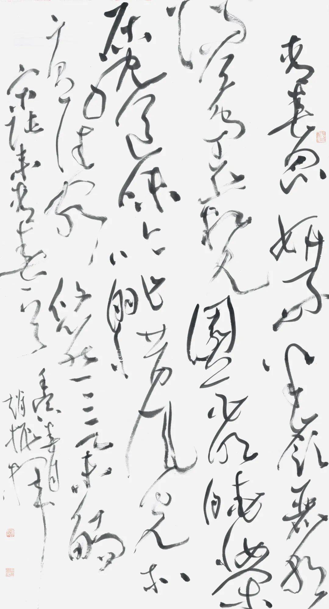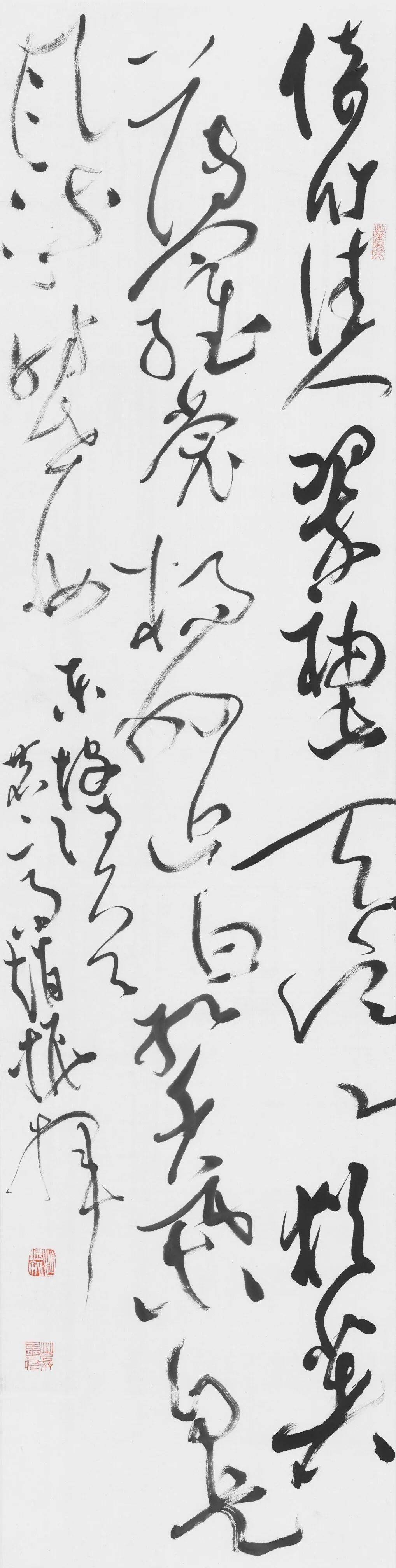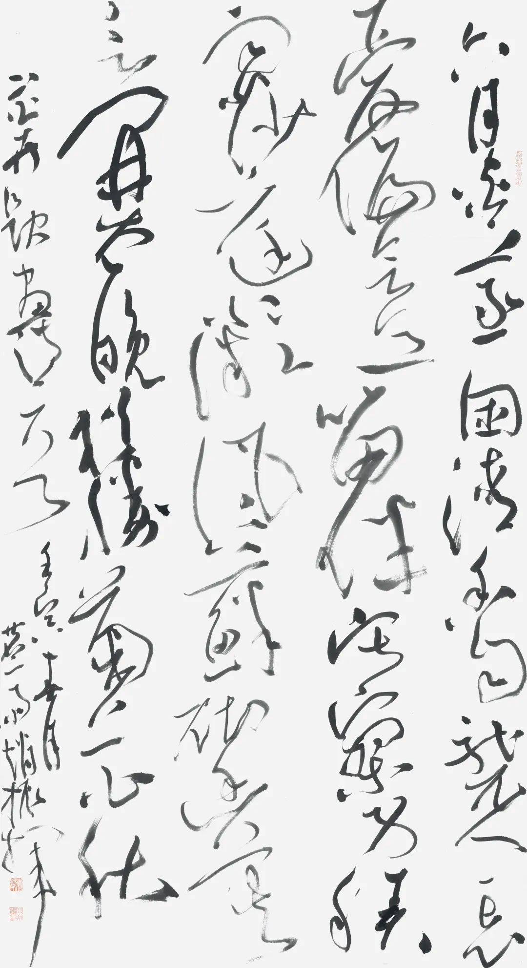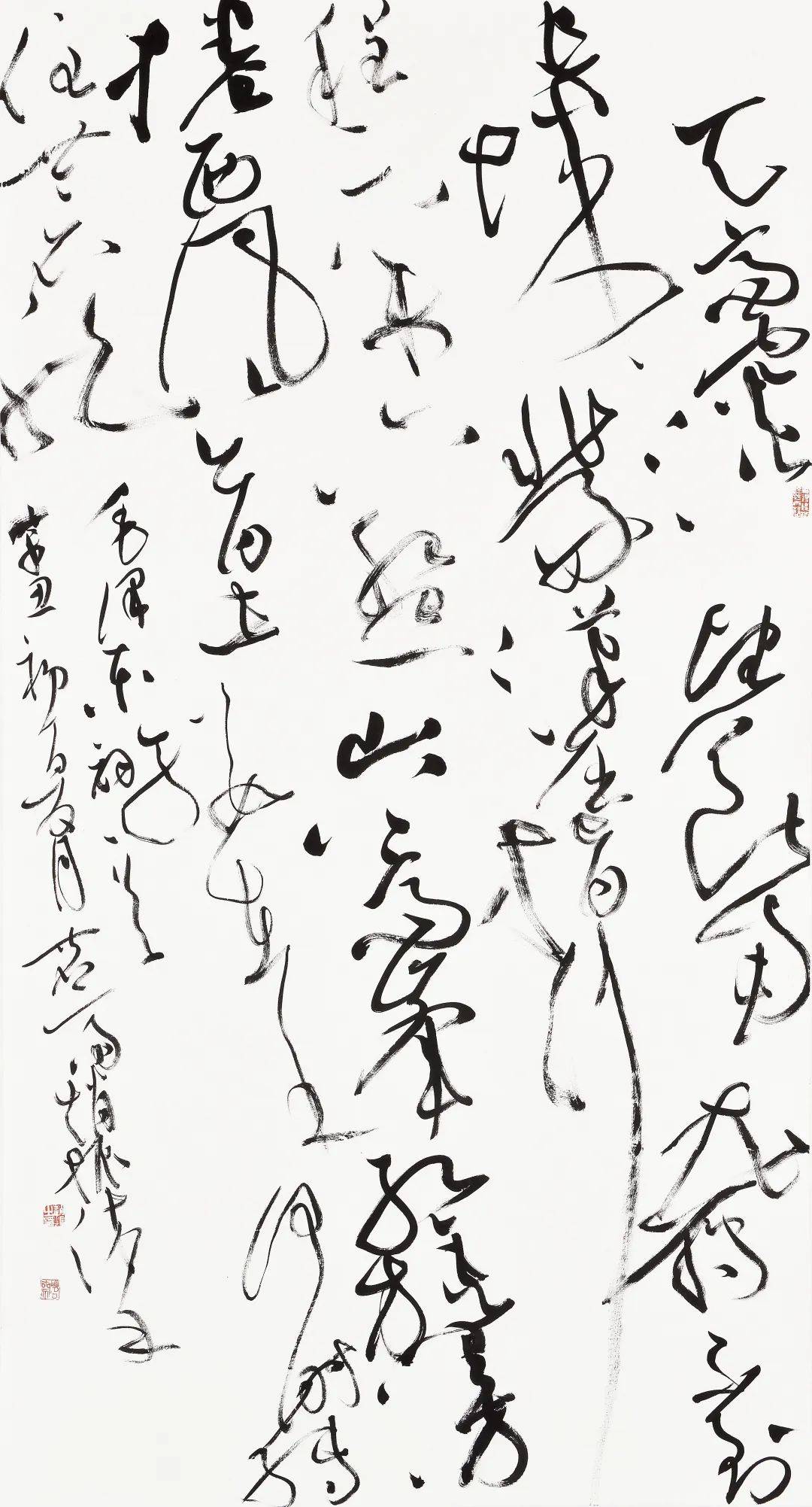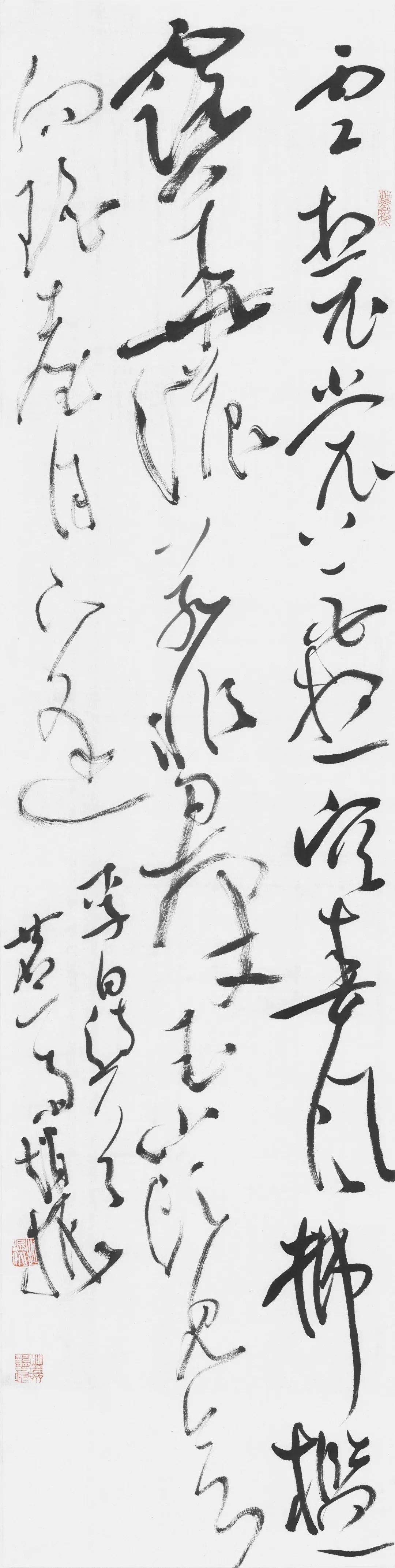 苏轼《赵昌四季芍药》138cm•34cm 2022年 世间无物非草书,世间万物均可化为草书之意态,当我们真正走进草书的世界里,感受线的生命活力,会发现,它是抽象的表达,是极致的变化,又是独立的状态。笔墨的表达往往在于书者内心的理想追求,是技法醇熟的流露与瞬间迸发的热情。草书需要气息,气息是扑面而来的感觉,是不能言说的理想,是书者内心深处追求的精神气质。草书需要格调,格调是对于经典审美的高度凝聚与升华,布局、韵味、节奏,缺一不可!当我们看惯了也实践过了所谓的“浓墨重彩与热闹非凡”,寻找另外一种安静的表达,在手法洗练基础之上表现草书的“气韵生动”与“静中含动”是一个新的也是重要的课题。 ———— 赵振