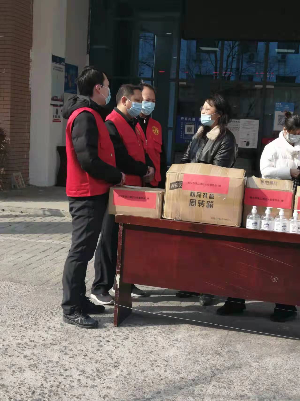 3月22日下午支部书记肖楠同志带领会长严宏,副会长王兆兵、田谦谈,秘书长丁晓燕等党员来到北京北路社区,为奋战第一线防疫工作者送去一份爱心,捐赠抗疫保障物资,包括口罩、酒精洗手液等,希望为他们增添一份防护保障,确保防疫英雄们身体安康。为众人抱薪者,不可使其扼于风雪。