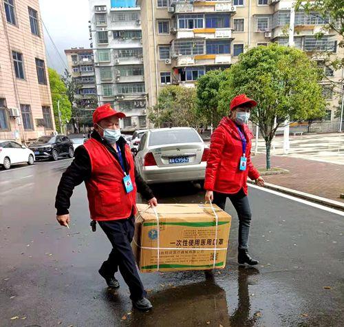 志愿者将爱心口罩送到湘铝学校