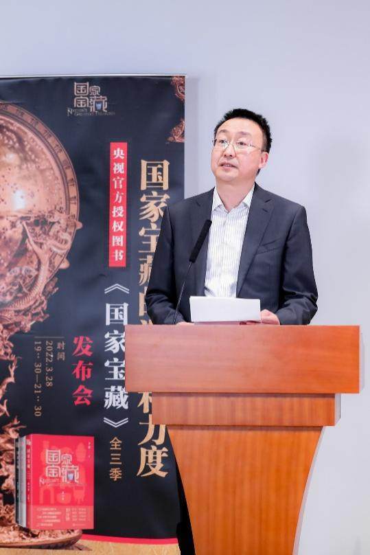 中央广播电视总台文艺节目中心副召集人吕逸涛在致辞中指出,图书《国家宝藏》系列“书生动展现了历史与艺术的交融,体现了中华文化和民族精神的活力,是一场文字和视觉的盛宴,是一座纸上的博物馆”。