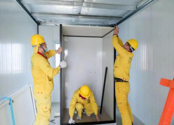 辽宁省家具协会副会长单位方林集团派出旗下4个公司500余名自有工人援建,负责卫浴模块进水、排水的安装以及板房安装。从选材、测量、设计、施工都实行标准化管理,工人们分工明确,按照既定程序紧密配合,有条不紊地高标准施工,保证专业医护板房高质高量高效完工。