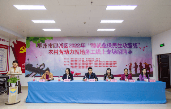 2022年3月30日上午,柳州市四城区2022年“稳就业保民生攻坚战”农村劳动力就地务工线上专场招聘会在柳州市鱼峰区东环大道47号B座二层如火如荼地进行。