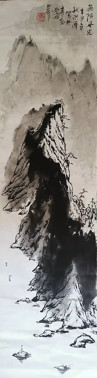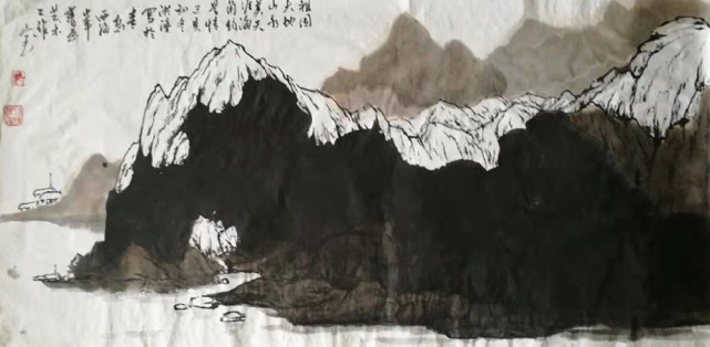 张洪济作品 张洪济先生的山水;自然与写意相互统一,意境高远,意在营造一种充满自然、古意的情调和气氛。用具象的笔墨语言及传统的图式,用符合大自然的笔触和节奏,色墨交融的画面,强化了现代气息的营造,使作品体现出美学价值和人文精神。其笔法与墨法的相互融合,最终带给作品的是画面与心境的完美呈现。通过这些情感特质提炼出高雅而深远的境界,让人们看到的是充满温情的平和景象;让那充满生气的山水,云雾在笔墨简练之中富于变化,层次疏密有致,画面色彩鲜明,诗情浓厚、意境深邃,既有雄风大气的构图,又有精细入微的刻画。张洪济先生用笔墨来描写这些形象,在虚实关系中使两者有机交融,努力追求作品的写意精神,这是中华民族独具特征的艺术表现。