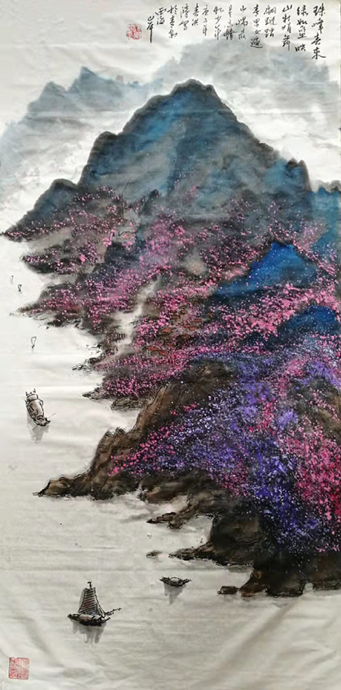 ![]() 中国画注重文以载道,具有鲜明的艺术特色和丰富的内涵。以独特美学价值、艺术语言表达其形象、情趣及意境;将民族特有的思维方式,审美意识,文化传统和哲学观念融为一体,来概括对客观物象的表现,从而达到“天人合一”的理想境界。中国画不仅具有很强的描写性,而且富有诗意,一幅精美的画作之所以给人以美的享受,除了源于风景秀丽的自然美景,艺术家要有匠心独运的构思,高超艺术技法的运用,经过笔墨色彩的渲染,使气韵生动的自然美景跃然纸上。在当代画坛、张洪济先生是一位博学多识、德艺双馨的艺术家,在山水、花鸟画创作方面有着自己独特的追求和价值取向,其笔下的作品与诗意融合在一起,达到了一种美妙高深的艺术境界。