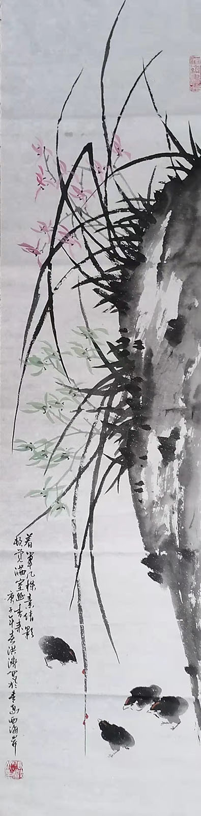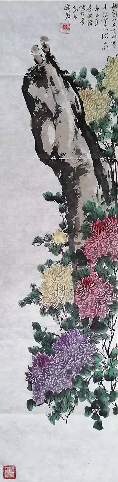 张洪济作品 自幼习画,大学时为系刊美术编辑,毕业后虽长期从事文化宣传和编辑等行政工作,但绘画嗜癖不辍,初临伯年、八怪,后习雪涛、黄幻吾。在不断研究石涛《画谱》的过程中深得“一画之法”之教义。绘画同时又重点研习篆书篆刻,书画互惠,相得益彰。作品清新俊逸,古朴而有创意,深受大众喜爱。八十年代始,先后在青岛、日照、胶州、即墨等市举办个展,并多次参加全国、全省、全市书画联展,获金奖、大奖、一、二、三等奖十数次。个人入编《中国历代书画家名人辞海》。作品入编《百年经典一中国美术全集》、《世界传世名画书法鉴赏》、《中国当代著名书画家珍品选》,《当代书画名家精典》、《跨世纪中国书画艺术经典》、(民族之花一书画名家作品集》等十几本大型面册。