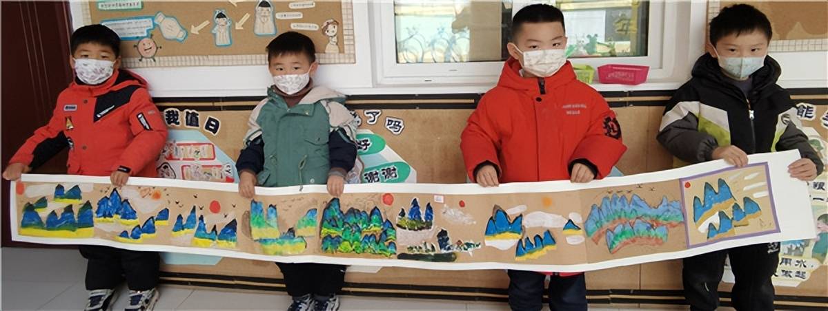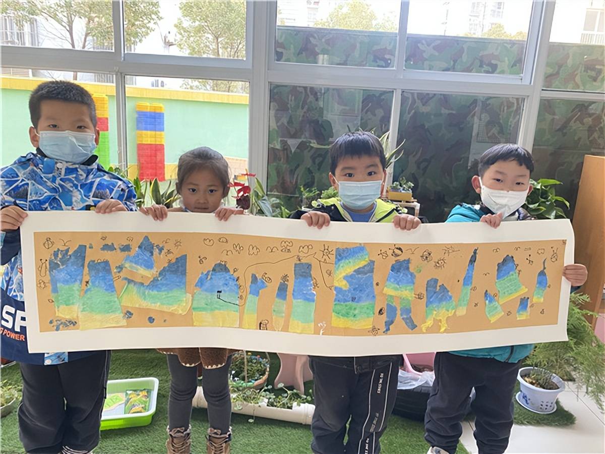 万物生,绘清明。春天到了万物新生,老师们带领幼儿园的孩子们观察园内园外蘸满复苏的春意。指导孩子们看丝丝青绿,轻描春妆,用手中的画笔画出心中的《只此青绿》。