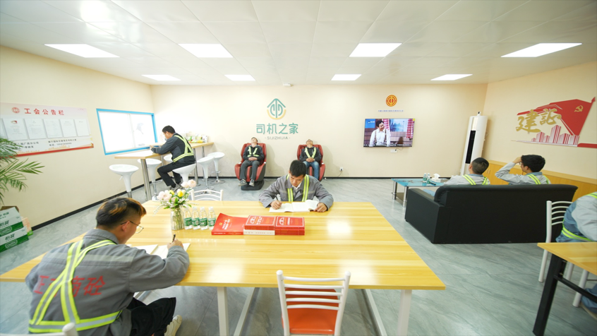 工地上的司机、工友们在“司机之家”休闲娱乐 26岁的湖南小伙儿王兴阳讲述的,就是2021年12月24日正式成立的位于南宁吴圩国际机场G210国道旁的司机之家,这是中建八局和自治区、南宁市总工会设立在工地上的司机之家,目前由中建八局广西分公司南宁国际空港综合交通枢纽项目运营。