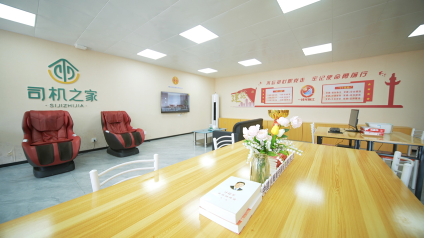 项目“司机之家”内景 项目结合特色党建品牌:一线党旗红,引入“党建司机之家”模式,充分发挥“司机之家”在宣传党的政策方针、加强基层党的建设、传递行业正能量的窗口和阵地作用。南宁市总工会、中建八局广西分公司工会向司机之家阅览角赠送了1 0 0多本党建图书和报刊杂志,将党和国家、工会对广大货车司机的关心关怀传递到司机群体之中,有效拉近了党群关系,做好最贴心的“娘家人”,打通服务的最后一步。 中建八局广西分公司南宁国际空港项目工会主席李政友说:“现在项目上的司机之家是一个试点,之后我们会继续改进,将司机之家的功能设施装入集装箱内,争取做到司机在哪里,“家”就在哪里,到一个新的地方只需要接通水电,最快半天即可入住!”