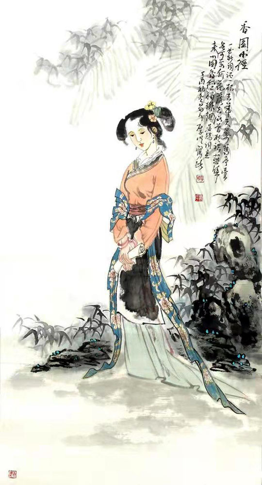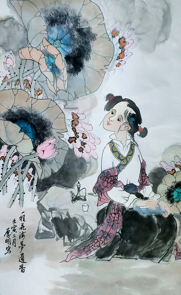 周厚明作品 周厚明先生是一位集诗书画文于一身,诗情与画意融会贯通的艺术家。始终秉承传统文化和自然的灵秀之气,把自己的文学修养、思想、志趣融入创作中。以扎实的传统技法为基础,结合其独特的审美观和思维方式,创造了充满自然灵气而富有想象力的艺术语言。其作品画面清新淡雅,疏朗空灵,有诗一般的意蕴;极为强调画面构成,不但具有现代美学趣味的视觉张力,而且能够获得充满传统文化底蕴的诗画意境。在周厚明先生的笔下;往往有着与众不同的视角及表达方式及笔墨语言和视觉效果,更接近于自然的韵律,透射出民族文化精神。在艺术创作中,注重古法的规矩,构图讲究,笔墨严谨,使岁月的积淀、艺术的灵性、自我的感悟被体现得淋漓尽致。而由此构成的人物不仅艺术精湛,而且对贯穿在其中人文精神也到达了相当的层面。传统情怀和现代意识的融合,创造了悠然远思的意境。可以看出,对传统与当代文化语境的深刻认知,拓宽了周厚明先生的视野,从而达到形神并至,笔境兼夺的艺术效果。