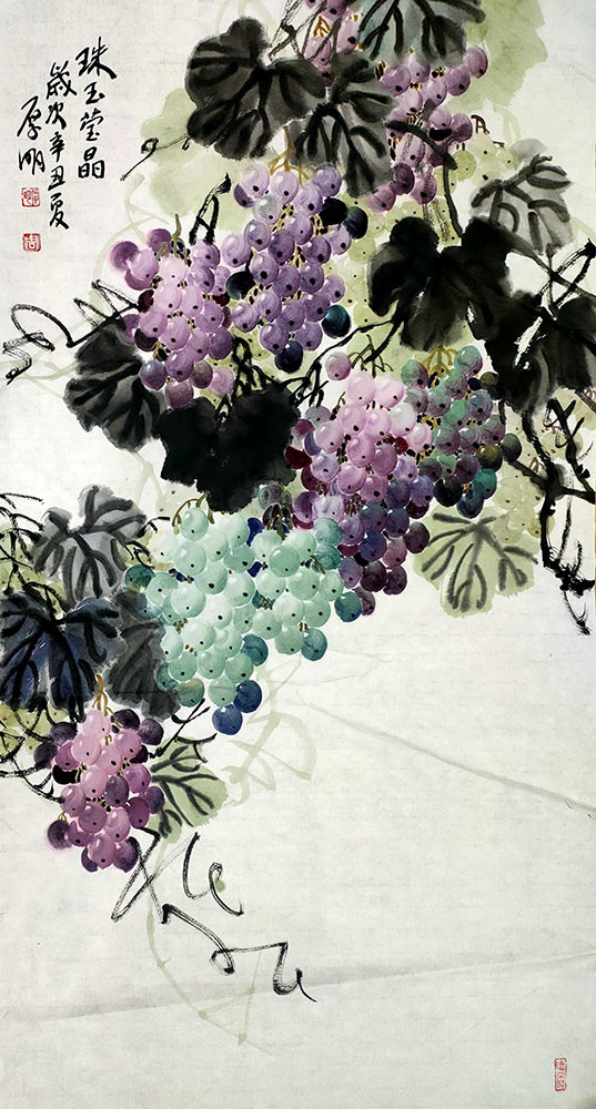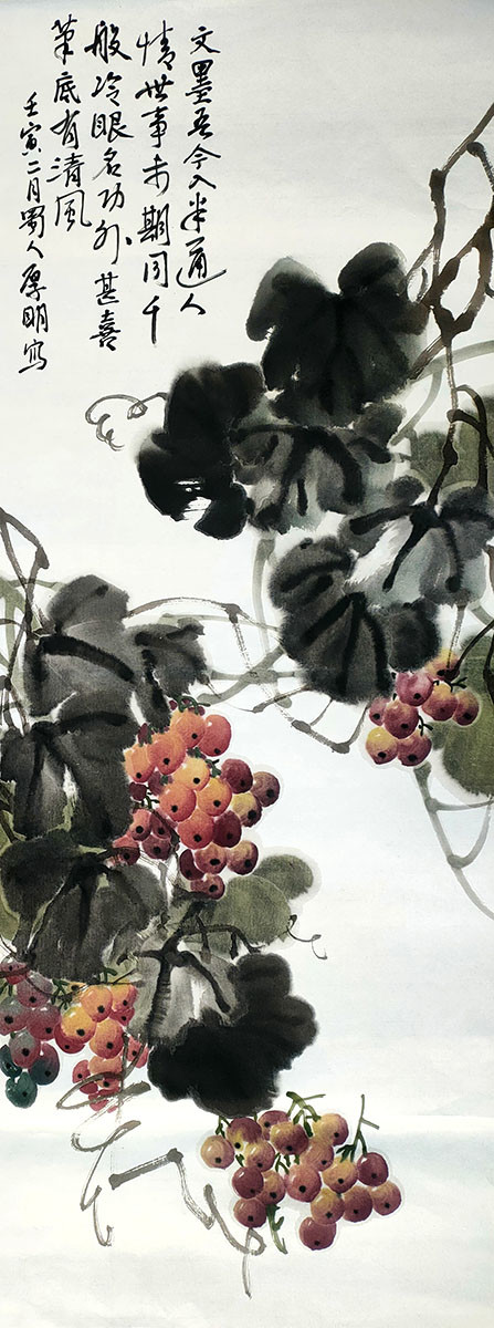 周厚明作品 观周厚明先生的葡萄画作品,在画面的构筑上,葡萄造型的笔墨运用上都更富变化,更具画意。从观察到写生,从写生到创作,层层解析,逐步深入,既利用水墨的天然效果,又运用色彩的浓淡变化,并在葡萄中间留出高光点,这一独特的表现手法使他笔下的葡萄水分饱满、丰盛充盈、墨彩交辉、生动自然,充分表现出葡萄那种半透明的质感、光感和空间感,取得了寄神于形、笔力苍劲、气韵生动、意境清新的艺术效果。正是如此格局中的笔墨获得了理想的艺术形式及结构表现,并注入一种不可知的力量感与内敛的张力;让气象、格调、境界、思想无不体现在作品之中,可谓精妙入神、浑然天成。周厚明先生作为当代书画家,在走进自然、走进文化、走进传统之中定位自己的创作,他的作品在整体的诗意美与清新的韵致中,体现了传统美学、时代精神相融的特殊魅力。在这里,我们汇集了他的书画代表作和近年的新作,一起领略他别具一格的诗意韵律和清气扑面的艺术气象。 ![]() 周厚明,1972年生于四川乐至县,现居成都。集诗书画文辞于一身。擅长古典诗词、辞赋、以及散文的创作。文备众体,不拘陈法,我以我法,随机而赋。为画之道主张以诗文筑魂,以法书立骨,以生活作基,并在生活中发现和体悟,不断积累终有所获。现为国家一级美术师、《中华辞赋》社会员、中国文联中外名人研究会“古今翰墨书画院副院长、央视中国世纪大采风书画院院士。荣获美丽中国"功勋艺术家"奖章一枚。有多篇文章及诗文发表于国家级专业文学刊物,地方及国家著名专业杂志、网络新媒体多次予以反复报道。作品多次参加省市级展览,曾被多家国内外单位及个人收藏。 ![]()