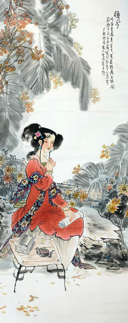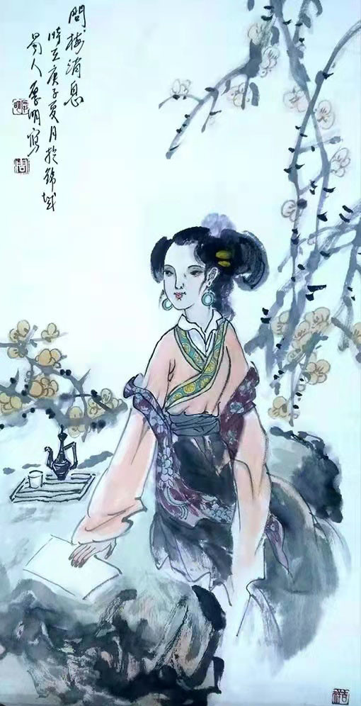 周厚明作品 写意人物把主观的审美意念与客观物象相融合;“以形写神”并以独特的方式在画面上意趣表达。作为学者型的书画家,周厚明先生其艺术特点在于能够用水墨笔调把人物的形,韵,神融为一体的和谐;以朴素平实的艺术语言,述说着生动形象和笔墨意趣,使作品意境幽远,余音袅袅,散发出清奇淡雅的魅力,洋溢着生命的活力与内在的气韵之美。在他的笔下,每个人都有自己独特的相貌特征和性格禀赋,荡漾着浓郁的生活气息,保持简约、厚重、灵动、大方的整体感和高品位。对人物神情、形态、精神的点化极为精微细致、干净明快;结构工致细腻,造型准确优美,动静结合的韵律中,实现了整体的清新幽雅,创作出一系列展现东方文化的典雅之美。周厚明先生用平和的线条勾勒出画面开合有度的造型,用温润的色调营造意境,方圆结合,虚实相间,笔墨的浓淡干枯使画面更显层次感。他以形象的语言表现出唯美的意境,神情中又赋予了饱满的心绪。其笔法与墨色的相互渗透,最终带给作品的是画面与心境的完美呈现,通过这些情感特质提炼出高雅而深远的境界,让人们看到的是充满温情的平和景象,形成独树一帜的个人艺术风格。