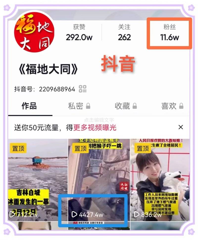 精品内容吸引粉丝。截至目前,“福地大同”各客户端累计拥有粉丝总量超过30多万人次。对于发布在各新媒体平台的内容,大同区融媒体中心的工作人员从主题选择到素材运用,从图像呈现到语言表达,都经过多次研讨协商,确保精益求精、完美呈现。及时、优质的信息内容吸引了越来越多粉丝的关注。其中微信公众号、抖音平台、微信视频号、人民日报人民号、粉丝量位列前四名,粉丝数分别为12.7万、11.6万、5.3万、3.6万。其他平台的粉丝人数也呈现出稳中有升的态势。