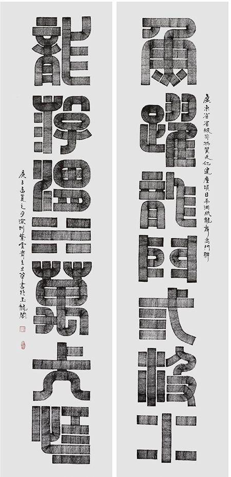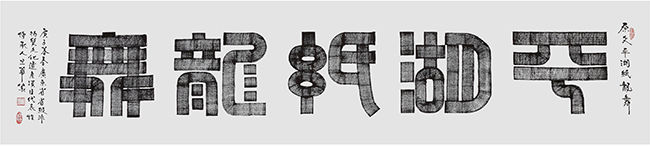 ![]() 刘旦华,号雕龙子孙,1954年生于深圳平湖松柏围,自幼受家庭传统文化熏陶,国学基础扎实,喜篆书、草书、甲骨文,对甲骨文有系统的研究。作品吸收了楚简、金文和草书的特点,追求“篆意草情”的用笔观念,无论在用笔、纸、墨上都能有所突破,较好地突出了古篆本有的精、气、神和古朴清新之美,尤其在进京面授中得到中国书法家协会培训中心教授的悉心授教,技法更有明显提高。近十多年来,上下求索,师古出新,其在传统大篆基础上独创的“黑篆体”,更有自己独到之处,形成了自己独特的艺术风格,在当今的书法界独树一帜。在书坛上更是奠定了坚不可摧的地位。 刘旦华为法学研究生学历,曾被聘为农业部中国乡镇企业研究院研究员、中国历史唯物主义学会特邀研究员。现为中国楹联学会会员、中国楹联学会书法艺术研究会副秘书长、国家高级书法家、中国中华文化传承委员会专家委员、世界文艺家企业家交流中心终身艺术顾问、深圳市汉文化促进会常务副会长兼秘书长,深圳市平湖街道书画协会会长。 刘旦华是深圳地区本土传统文化的发掘者和传播者,他不畏艰辛参与了《话说平湖》《平湖村志》《百年平湖书系》《末代拔贡》的编綦工作,自著有《平湖旧事》等,是深圳市党史文献和地方志学会会员。 2008年他发掘了停演42年之久的“平湖纸龙舞”,被广东省文化厅列入省级非物质文化遗产,同时刘旦华也被命名为广东省省级非物质文化遗产项目“平湖纸龙舞”代表性传承人。 刘旦华工行、草、隶,精于篆,独创“黑篆体”,其中刘旦华的作品就是以“龙舞”套路等为主题用“黑篆体”创作为主的作品。2021年出版《雕龙世家祖孙三代翰墨作品集》。