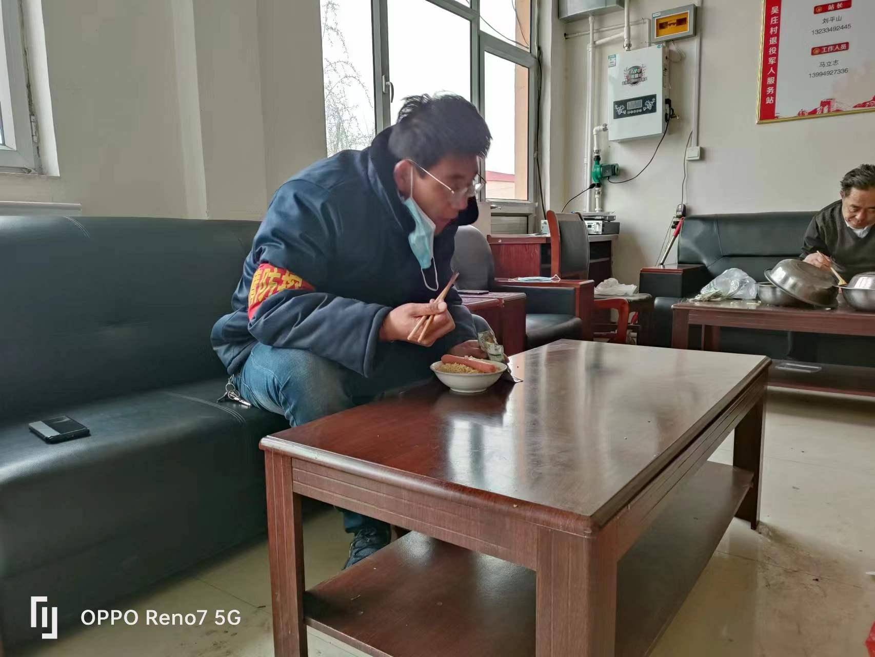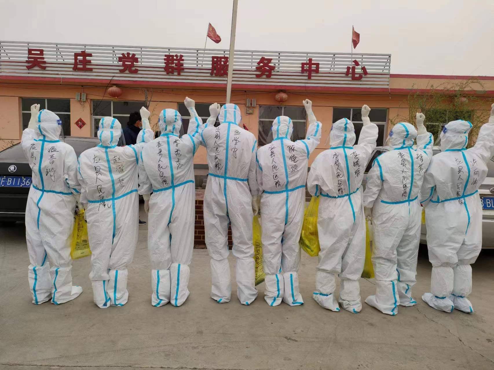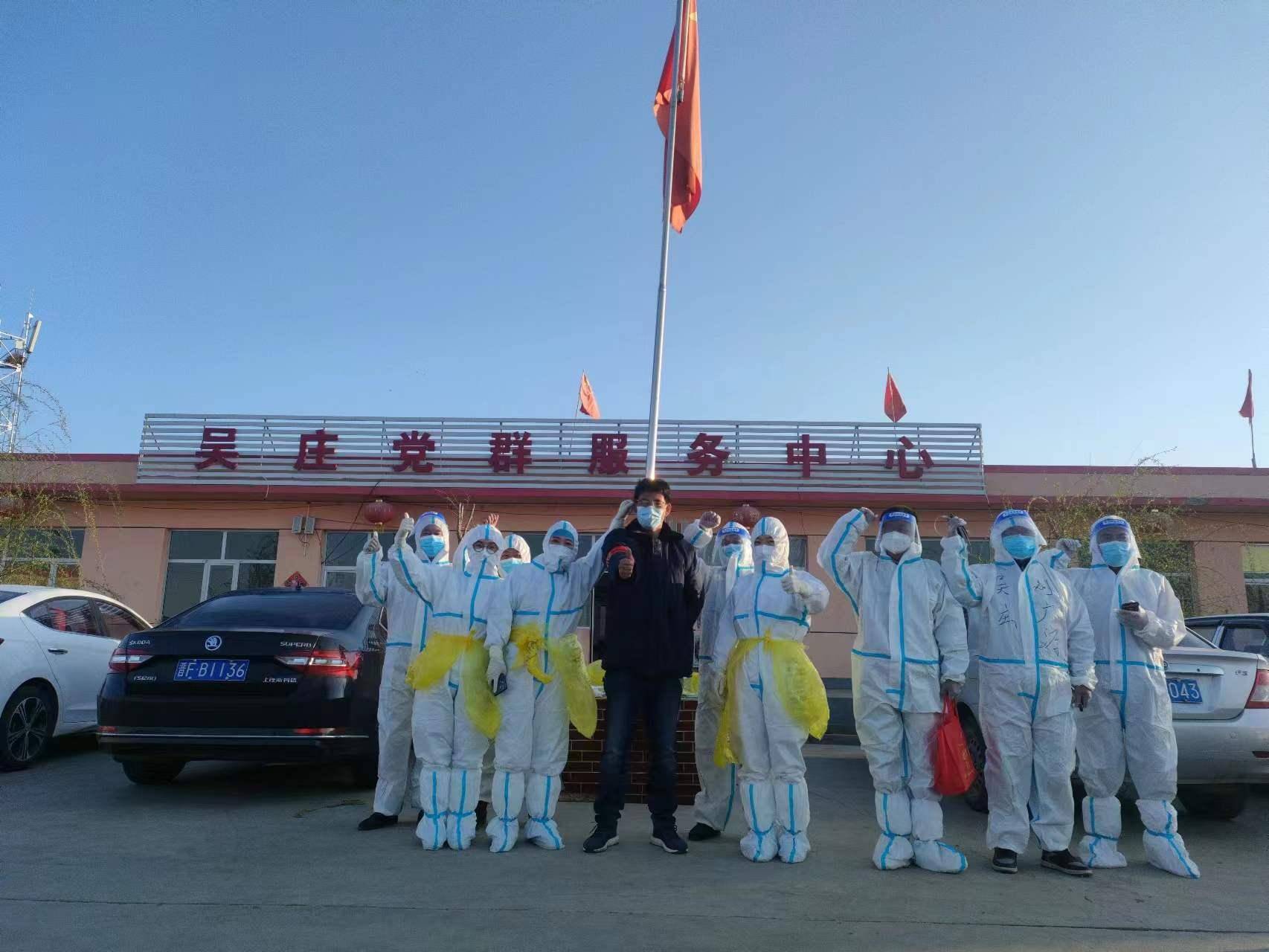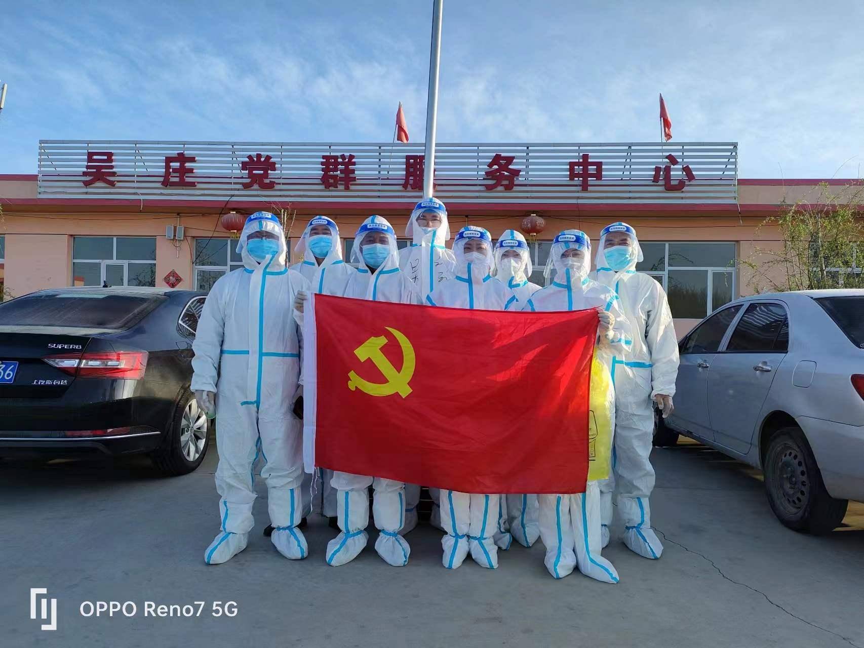 吴庄村周边疫情防控突击队集结,24小时日夜坚守,筑牢严密防线。4月14日上午,全体党员干部、退役军人、志愿者,积极配合县委、县政府派来的医务工作人员、公安干警迅速集结,立即成立 了14人的疫情防控先锋队,与村民无缝对接,以每家每户为单位,对群众进行核酸检测,与群众一道,共同筑牢疫情 " 防火墙 "。全体工作人员的心中都揣着一份温暖,对待每位村民和颜悦色:" 您好,请开开门,为了我们自身的安全和疫情防控的要求,需要您配合做核酸检测”;“大爷、大妈;大叔、大婶,这位兄弟、小妹妹请你们都戴好口罩,穿暖和一点跟随我们一起前去。" 对待每位群众和蔼可亲,把村民当成自己的亲人照顾的无微不至。通常下谷雨前应该是春暖花开的季节,但是塞北的天气还有些冷意,冒着春寒的霜冻和冷风的侵蚀,全体抗疫人员口罩、手套、防护服全副武装,紧密对接防疫所需、群众所急,高标准严要求完成好各项疫情防控工作任务。