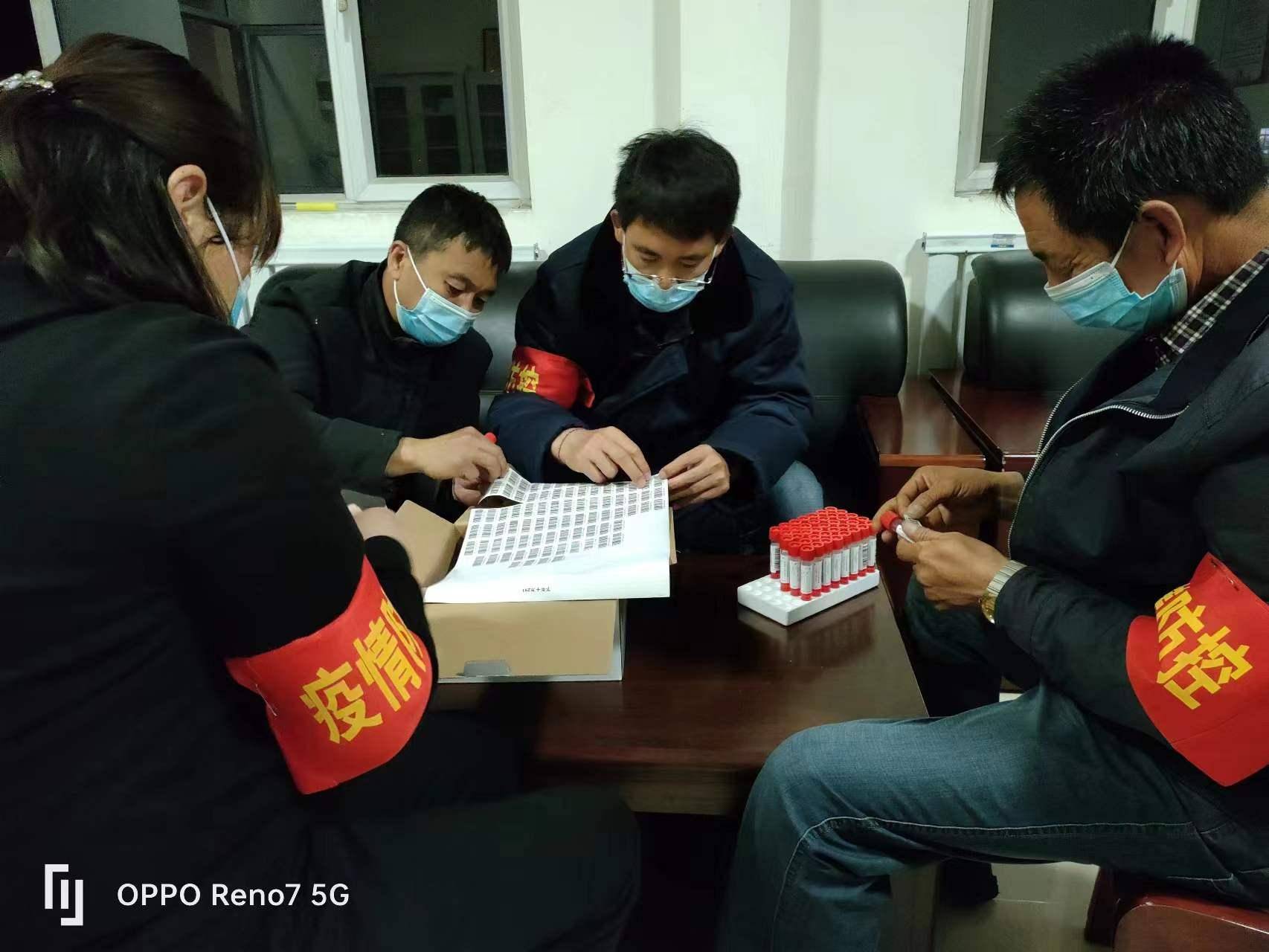 在村外广场采样点聚集区域,志愿者提着喇叭时刻提醒着群在采样期间,做好自我防护,全程佩戴口罩,与他人保持2米以上间隔,不交谈、不聚集、不扎堆,自觉维护现场秩序。从上午8:00点开始,村两委党员干部、工作人员、志愿者挨家挨户通知村民,彻夜运转,最终完成了全村384名村民的核酸检测任务。