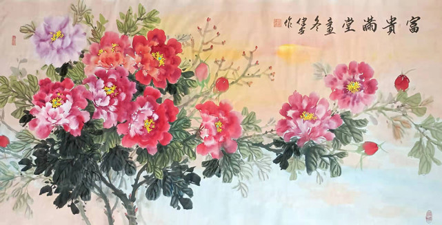 富贵满堂138X69(2022年创作) 简介及优秀作品入编《心纳万境》、《科教兴国》、《世纪辉煌》、《大家风范》、《奋斗中国人》、《领航中国当代艺术卷》等十多部书籍。被授予“人民艺术家”、“德艺双馨人民艺术家”、“二十一世纪中国文化名人”、“中华艺术家形象大使”、“青年杰出艺术家”、“中国百位杰出艺术家”、“北京冬奥会艺术形象大使”、“新时代杰出艺术家”等荣誉称号。2017年参加心纳万境-首届国展美术名家邀请展;入选北京地铁《艺脉相承》主题巡展。