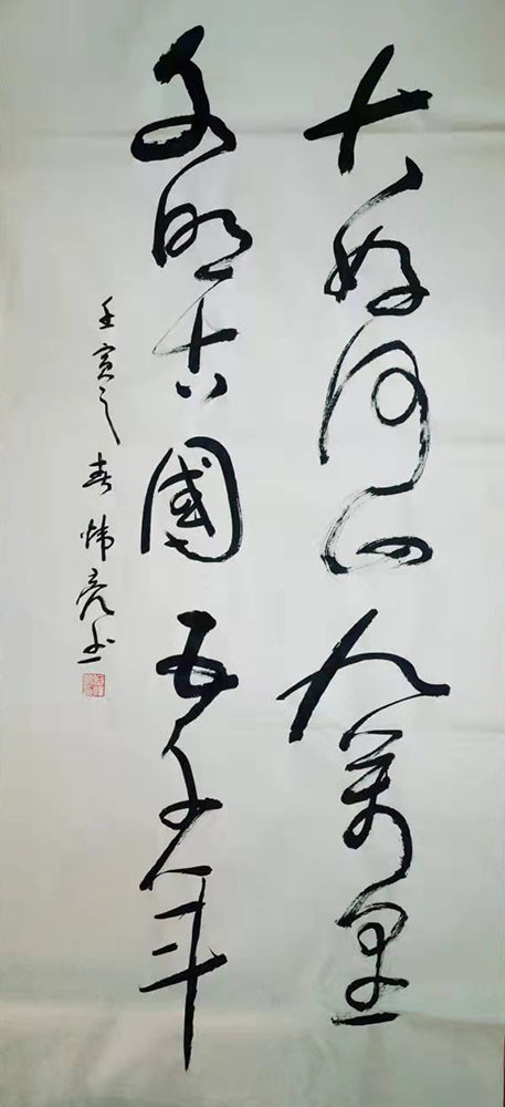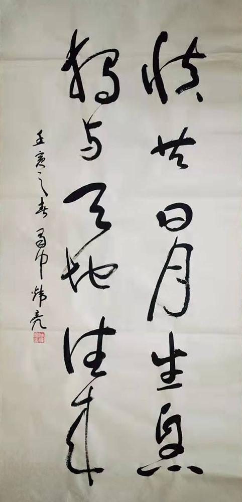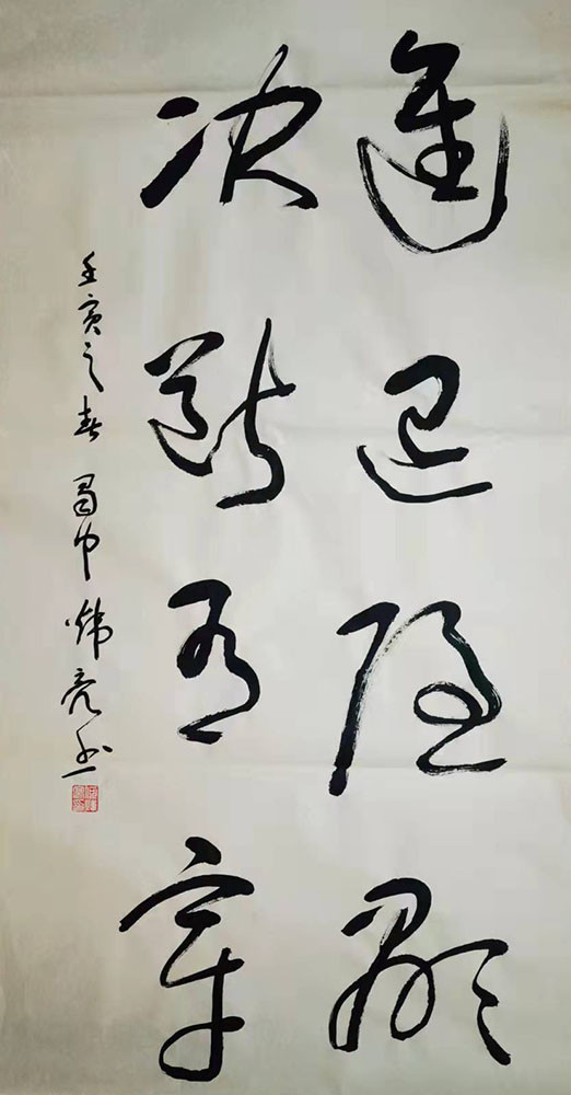 何炜亮作品 何炜亮先生与生俱来的豪爽、率真、刚直的性格,淋漓尽致地融于书法艺术之中。他以传统文化为根基,以扎实的技法为基础,融入自己的情感和思想到书法创作中,做到融古出新,体现出潇洒灵动、意象开阔又不失本真与严谨的新境界。我们看到,何炜亮先生的书法,在用笔上,对锋变拿捏得十分准确,而且变化迅速,无论是起笔、行笔,还是收笔,掌控得非常到位,而且相互之间的联系也十分紧密,这一点在点画的安排上,也有所体现,不但有明显的粗细对比,而且还有一种韧性和张力,形成强烈的视觉冲击力。作为退役军人的何炜亮,书法中还含有军人的特有豪气,他把军人的果敢,刚毅,直率,融入了他的书法创作中,使结体稳健端庄、笔墨流畅自然。从运笔、用墨、章法来看,灵动而不杂乱,意随心到,笔随意动;洒脱中见大度,自然中有刚毅,一笔一划,都彰显出有力量,有气势。字里行间流荡着风骨、神韵、飘逸与情感,既有传统书法风韵,又具有很强的时代特色,涌动着强大的生命力,充分展示了东方艺术博大精深的文化内涵。