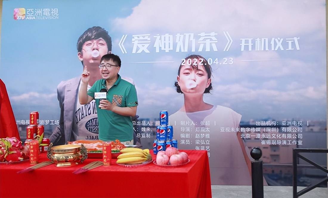 2022年4月23日上午10:00,由亚洲电视出品、《我的野蛮女友》原创团队倾力打造的都市情感IP短剧《爱神奶茶》在深圳万国城亚洲电视(深圳)总部基地/亚洲电视IP短剧梦工场正式开机!联合出品人:魏来,总监制:崔锡珉,制片人:张超,导演:郑现太;主演:梁弘立、张蓝艺、金茗岄等主创人员出席开机仪式。
