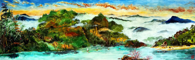 《浙南云雾瓯水情》180cmX85cm扵庚子年五月 |