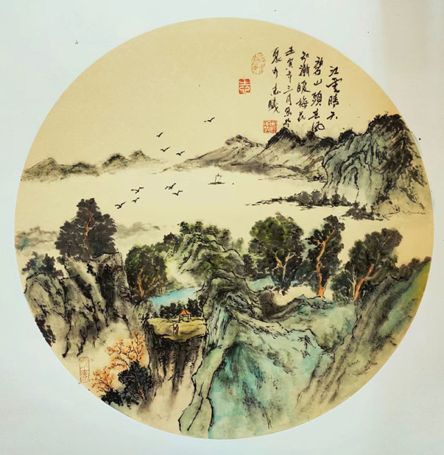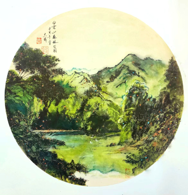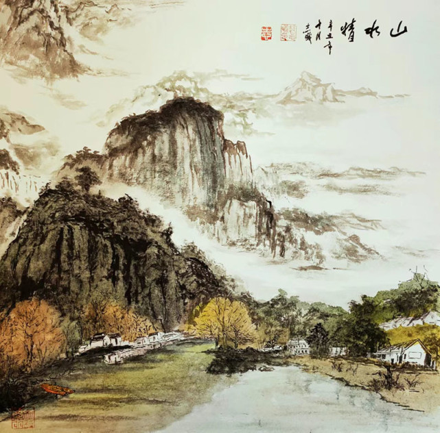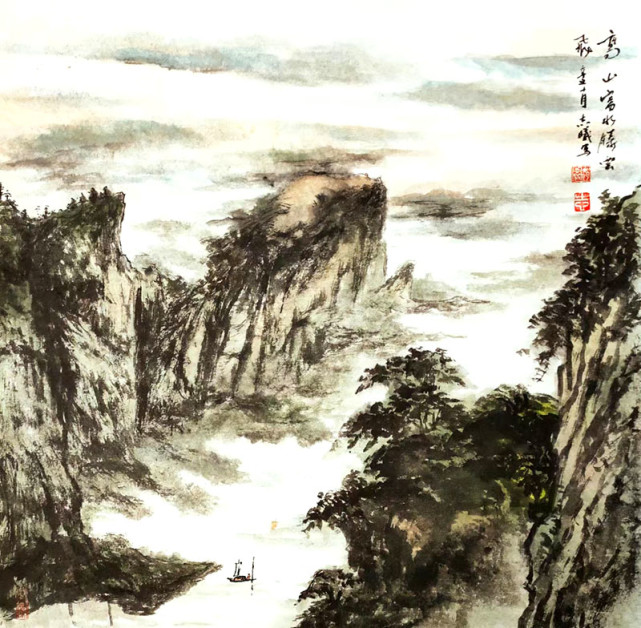 《高山富水腾雲飞》68cmX68cm辛丑年