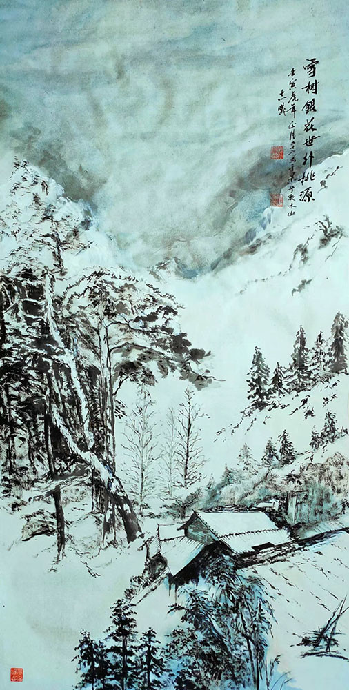 《雪树银花世外桃园》136cm×68cm壬寅年正月