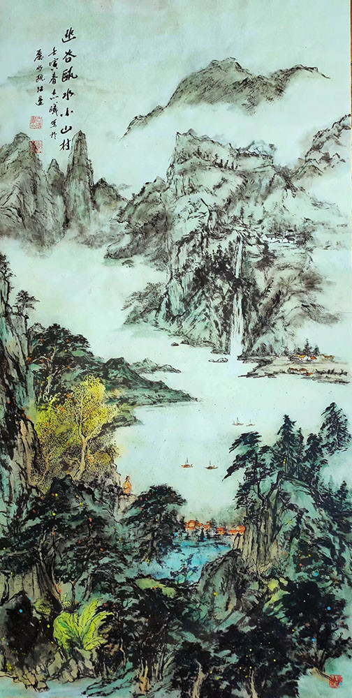 《幽谷甌水小山村》136cmX68cm壬寅年正月