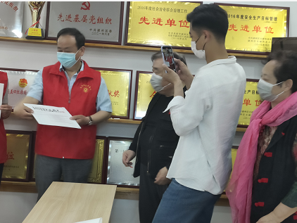 4月24日,中国长城文化金奖、中国新长城杰出艺术家获得者、著名书画家、清华大学美术学院书画客座教授刘振生李兰芬书画伉俪与书法报阜阳工作站负责人徐华东、普清华到阜阳市颍州区文峰办事处奎星苑社区把连日来创作的二十幅书画作品赠送给在社区防控疫情一线值守的志愿者。