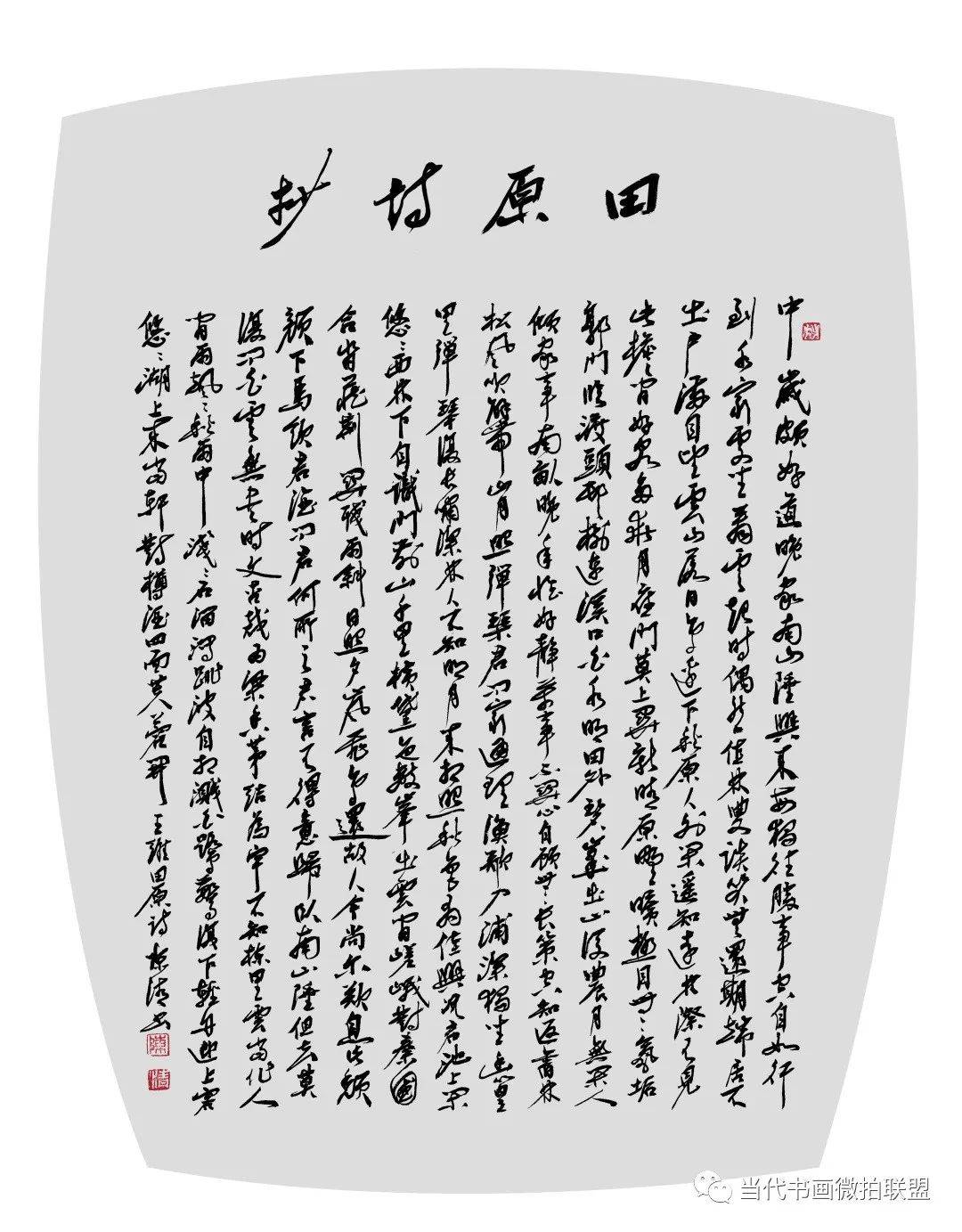 田原诗抄 陈清/书 28cm×21cm 所是者真 所知者深 ——读陈清先生的书法 文/叶鹏飞 王国维在《人间词话》中说:“大家之作,其言情也,必沁人心脾;其实景也,必豁人耳目。其辞脱口而出,无矫揉妆束之态。从其所是者真,所知者深也”。言明了文艺创作要达到高深的境界,就必须情由心出,豁人耳目。今读了陈清先生的一批书法近作,其透射出来的俊爽洒脱、生气蓬勃的风采,让我久视不舍,被其深切的翰墨情怀、丰富的文化内涵所吸引,正合于王国维先生所言。