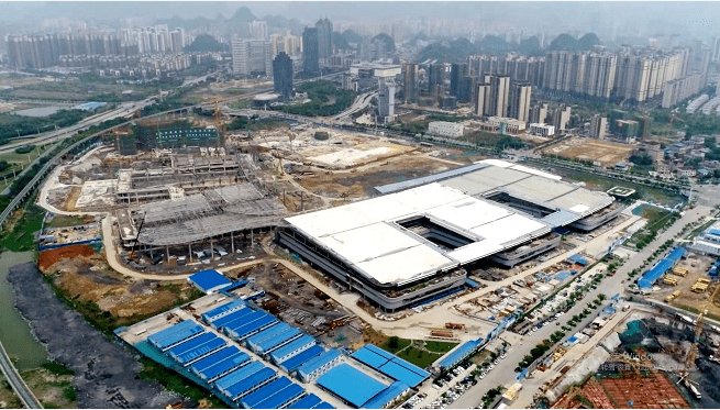 作为自治区重点工程,桂林国际会展中心项目将于2023年4月交付并投入使用,用于承办各类国际国内会议、展览、节庆和赛事等活动,集聚大量的信息、资金、人流,有效带动全市的交通、住宿、商业、餐饮、购物等相关产业发展,进一步提升桂林市国际形象和影响力。