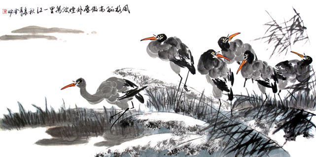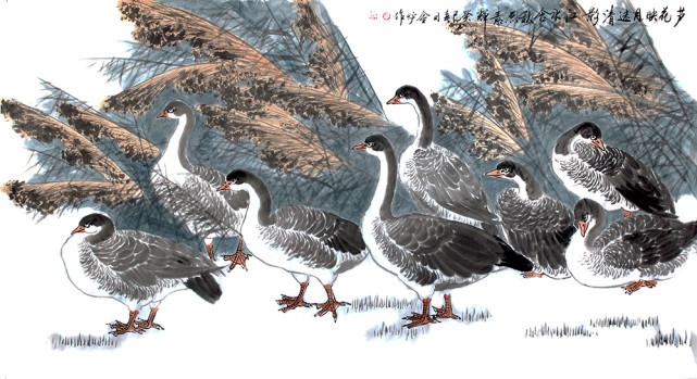 芦花映月迷清影、江水含秋点素辉(97x180cm))作于2013年