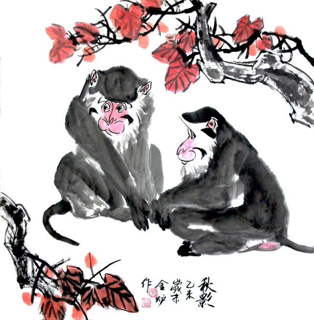 生来骨格傲风烟、枝头灵鼠乐其间(68x68cm)作于2006年 ![]() |