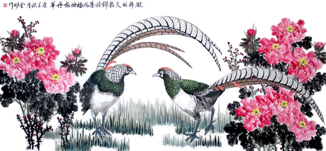 凝祥丽天招锦羽、集瑞福地放丹华(70x180cm)作于2020年