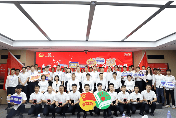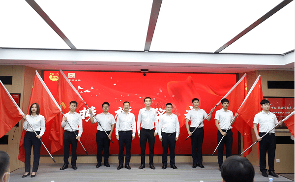 公司青年文明号创号代表向创号集体发出“以创建‘青年文明号’为新的起点,继续发扬爱岗敬业精神,强化“站在排头不能让,杠上红旗不能放”的创优争先意识。让理想信念在创业奋斗中升华,让青春在创新创造中闪光,为建设新时代壮美广西谱写一曲激情飞扬的青春之歌。”的倡议,与会领导共同为创号集体授旗。