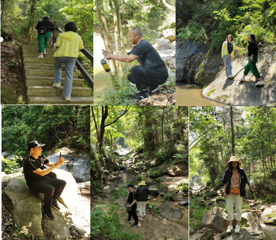 深入生活、走进大自然去呼吸新鲜空气,以静观众景,以达到外师造化,中得心源的境地。到达目的地后,大家游走山林间踩点寻找创作处。 图2:山间小道,溪边踩点