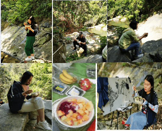 写生能触发个人的主观感受,经过观察、感受大自然的神奇美景,让画者面对多姿多彩的大自然,进行取舍、组织、再创造。 图5:山中简单的午餐