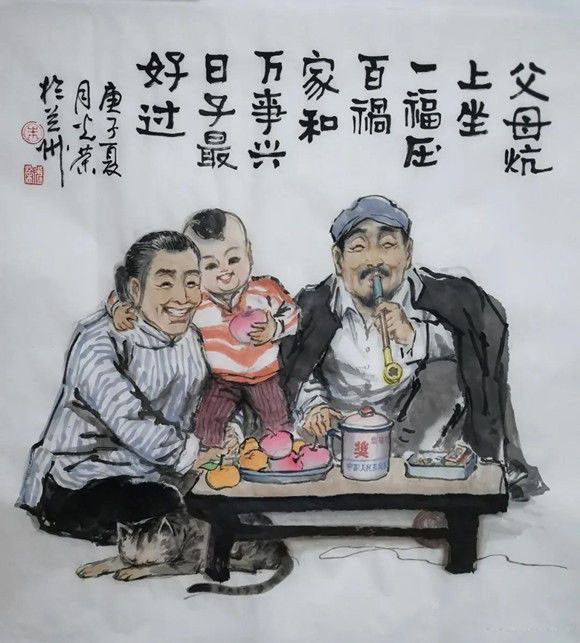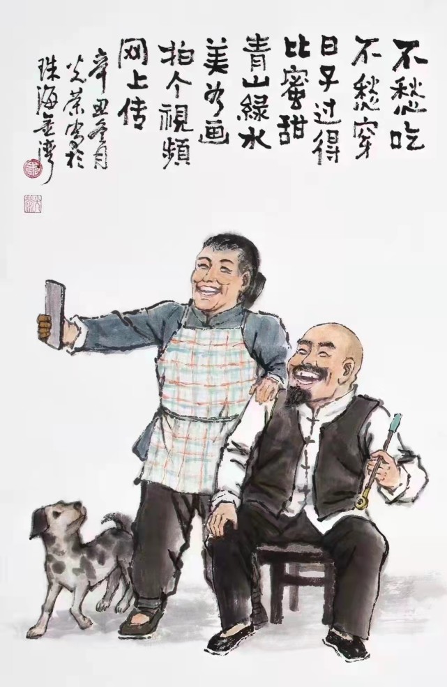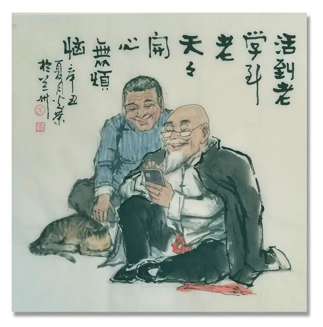 《悄悄话》68×68cm 优秀的作品需要丰富的想象力和创作灵感,创作的基础都源于生活,反映现实。朱光荣有着敏锐的观察力、他的叙事性构建及趣味表现,无一不源于他对生活深刻的感知、探索和领悟。在艺术作品中,朱光荣抓住生活中的点滴细节,赋予了画面创作思想和人生体验,注入了人生的思考,使作品实现了生活与艺术形式的统一,丰富了艺术表现力。无论是造型的意趣,还是神貌的鲜活、不仅刻画出人物的外在形象, 还呈现出生活中微妙的细节和感受,给作品增添了别样的故事感。其笔下的画作,鲜活的形象渗透着人性情怀,有着深刻的漫画语言,神情中又赋予了饱满的心绪。其笔法与墨色的相互渗透,最终带给作品的是画面与心境的完美呈现,通过这些情感特质提炼出深远的境界,让人们看到的是充满温情的平和景象,体现出浓浓的文化韵味。朱光荣的水墨谐趣画在于它的社会性、思想性、幽默性和哲理性,源于他对生活中典型场景的深刻观察和对生活的关注和感情。以水墨的表现力展现当代人的生活情感,达到更丰富的艺术层面。在这里,我们汇集了他的水墨谐趣画代表作和近年的新作,一起领略他别具一格的诗意韵律和清气扑面的艺术气象。 ![]() 朱光荣,甘肃临夏人,甘肃省漫画学会会长,中国美术家协会会员,国家一级美术师,丰子恺画院持聘画师,中国当代水墨谐趣画领军人物。 朱光荣是自学成才的画家,擅长画速写。年轻时曾创作出版了不少国画,年画,宣传画,后与漫画结缘,在报刊上发表了五百多幅漫画作品,受到业界好评。为了实现漫画界提出的“让漫画登上大雅之堂”的宏愿,退休以后,他利用自己擅长国画的优势,把国画的技法和漫画的特点结合起来,苦心钻研,终于创作出了一批贴近生活,贴近群众,生动有趣,雅俗共赏的水墨谐趣画,曾在兰州,广州,东莞,江门,长沙,揭阳,中山,珠海等地展出和交流,很受各地群众和书画爱好者的欢迎。