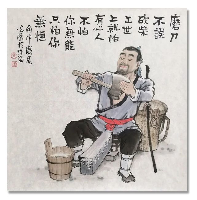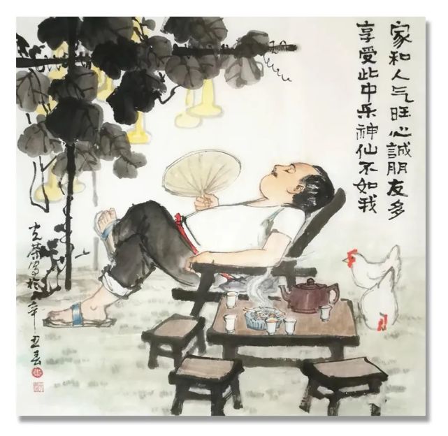 ![]() 人物画因其强烈的表现语言而具有深刻的思想内涵;传达出精神意蕴和笔墨情趣。人物画力求个性刻画的气韵生动、形神兼备;要把对性格的表现,寓于环境、气氛和动态渲染其中。作为当代画家,朱光荣的水墨谐趣画富于幽默、哲理、诗意、个性和笔墨情趣。以形象、人文、思辨的笔墨和视角,来表现社会生活,表达思想情感、品位和格调,淋漓尽致地画出人生意趣,洋溢着生命的活力与内在的气韵之美,形成了独特的风格。